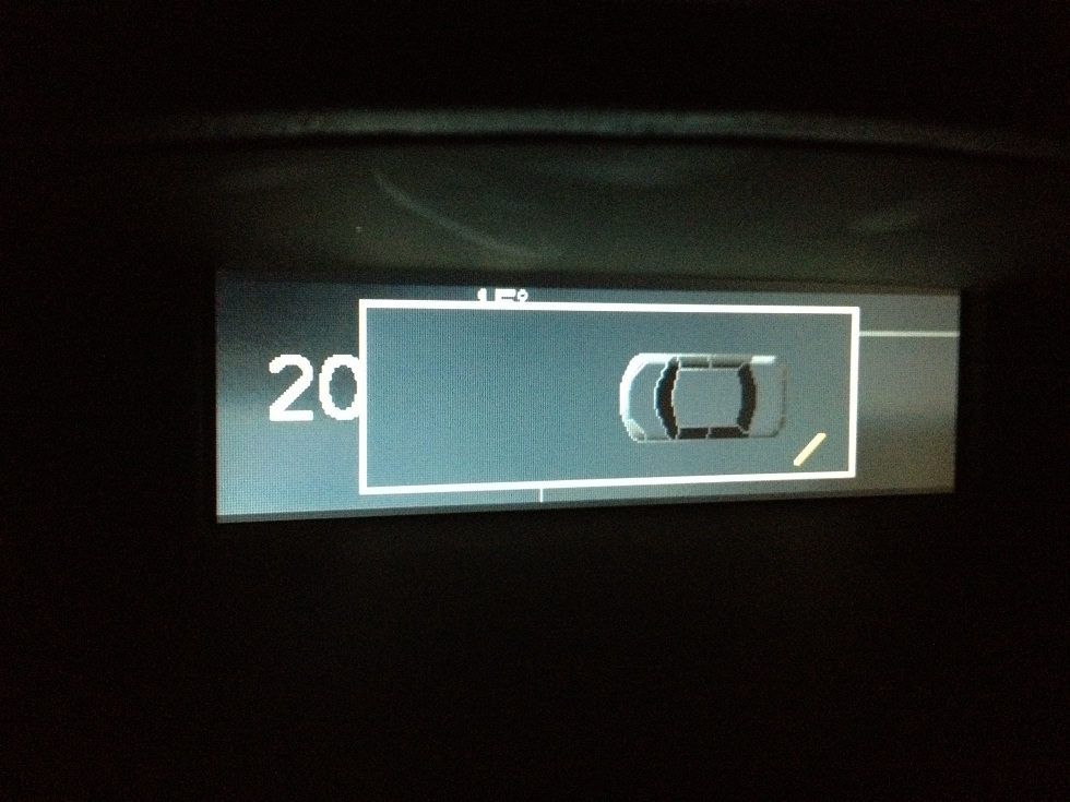 On peut également voir que l'afficheur en marche arrière affiche vraiment la visualisation d'aide au stationnement en avant plan.