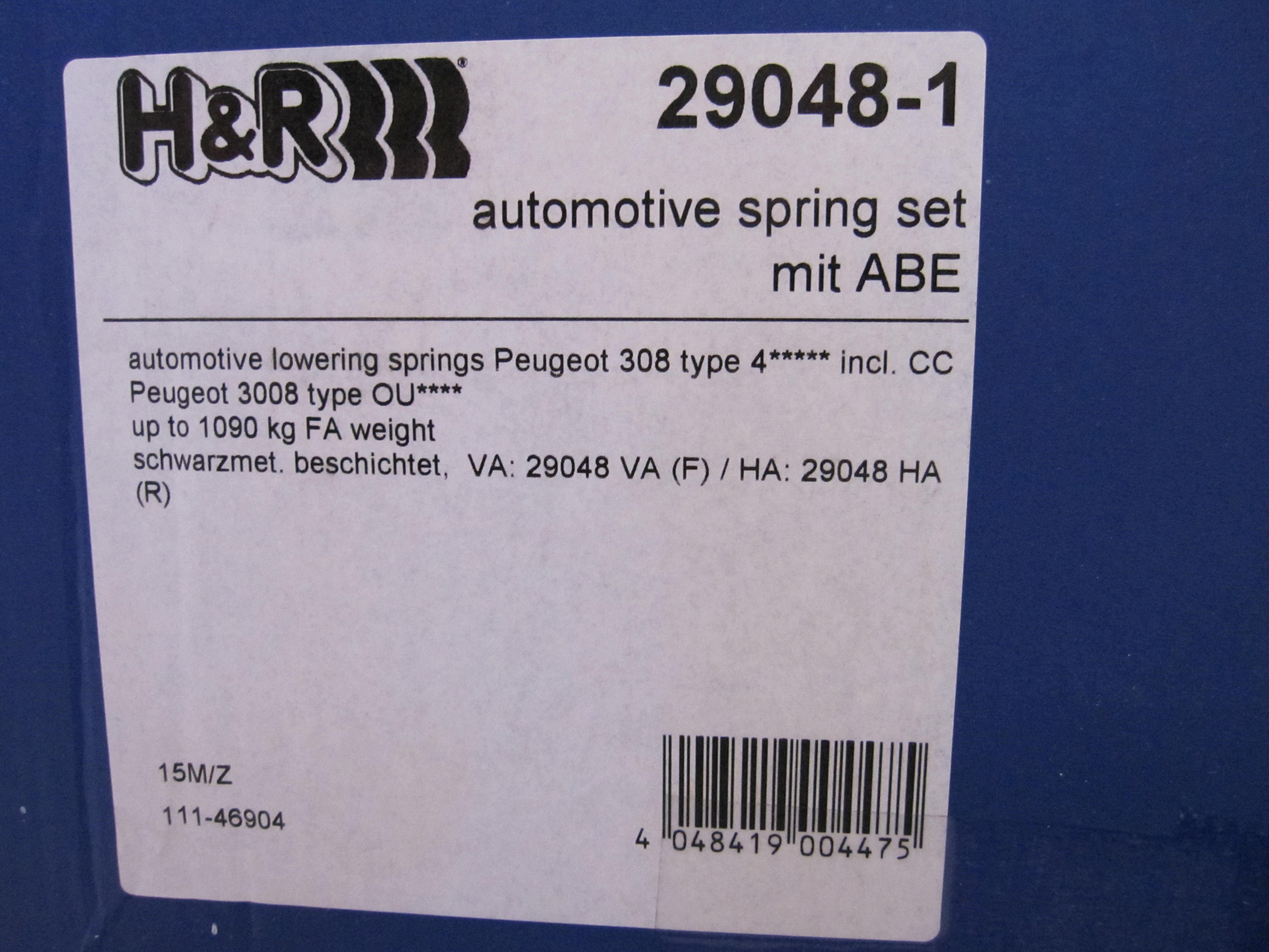 Ressorts courts H&R peugeot 308