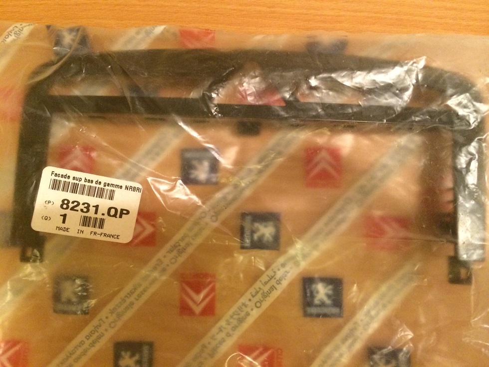 Voici un réducteur de facade pour 308 de couleur noire nacrée neuve dans son emballage scellé.