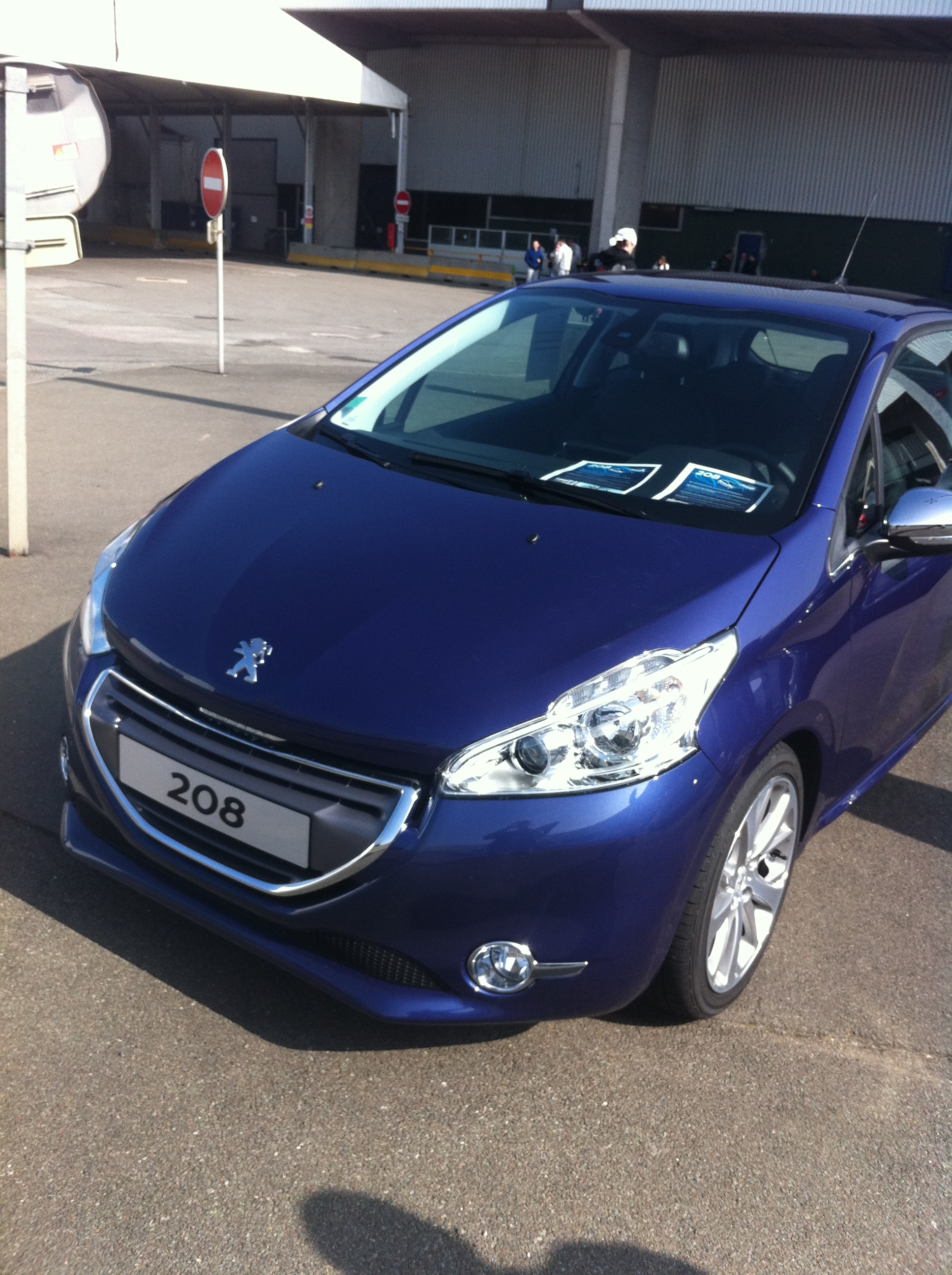 hello ! photo prise a l'usine a Sochaux, c'est donc une 208 'allure' plutôt bien équipé avec le semi cuir, l'écran multifonction, jante alu 17¨,pack chrome etc...équipé du moteur 115ch e-hdi, prix vvp 17500euros, sachant que pour le personnel Peugeot le prix début a 9984euros ce qui est pas mal. :wink: