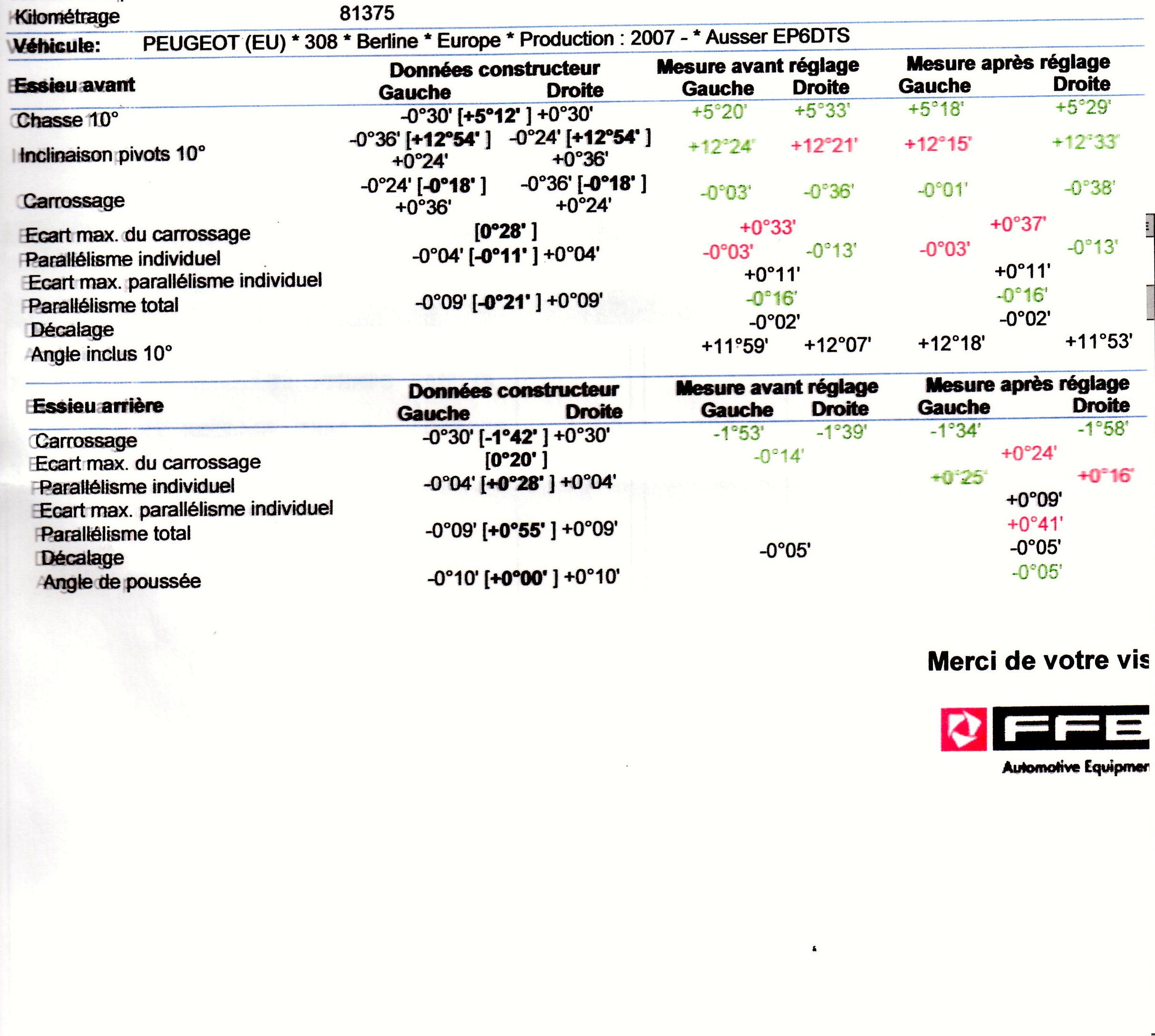 Personne n'a fait faire de géométrie sur sa 308 depuis qu'il l'a?