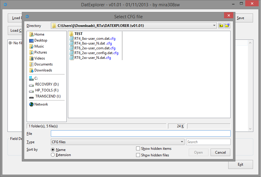 Lancez DATEXPLORER et cliquez sur Load Config