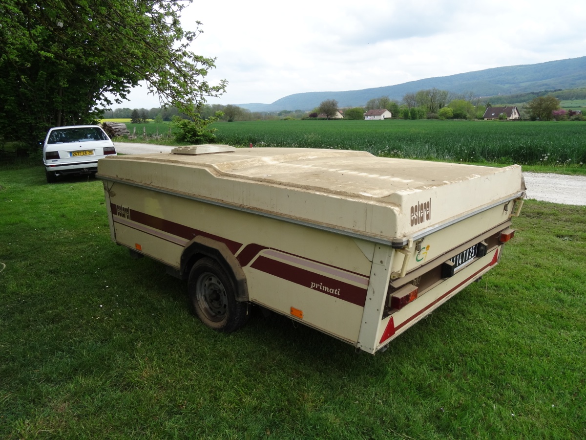Il s'agit d'une caravane pliante de 1989 qui est remisée depuis bientôt 6 ans :0 8| 8/ Elle appartient à mes parents et il y à peu ils ont décidés de la vendre donc fallait qu'elle soit présentable. Elle à été stockée dans le hangar du paysan avec une bâche dessus, mais les courant d'air ont eu raison de la bâche donc la saletée est bien venu se poser délicatement dessus :hehe: :hehe: