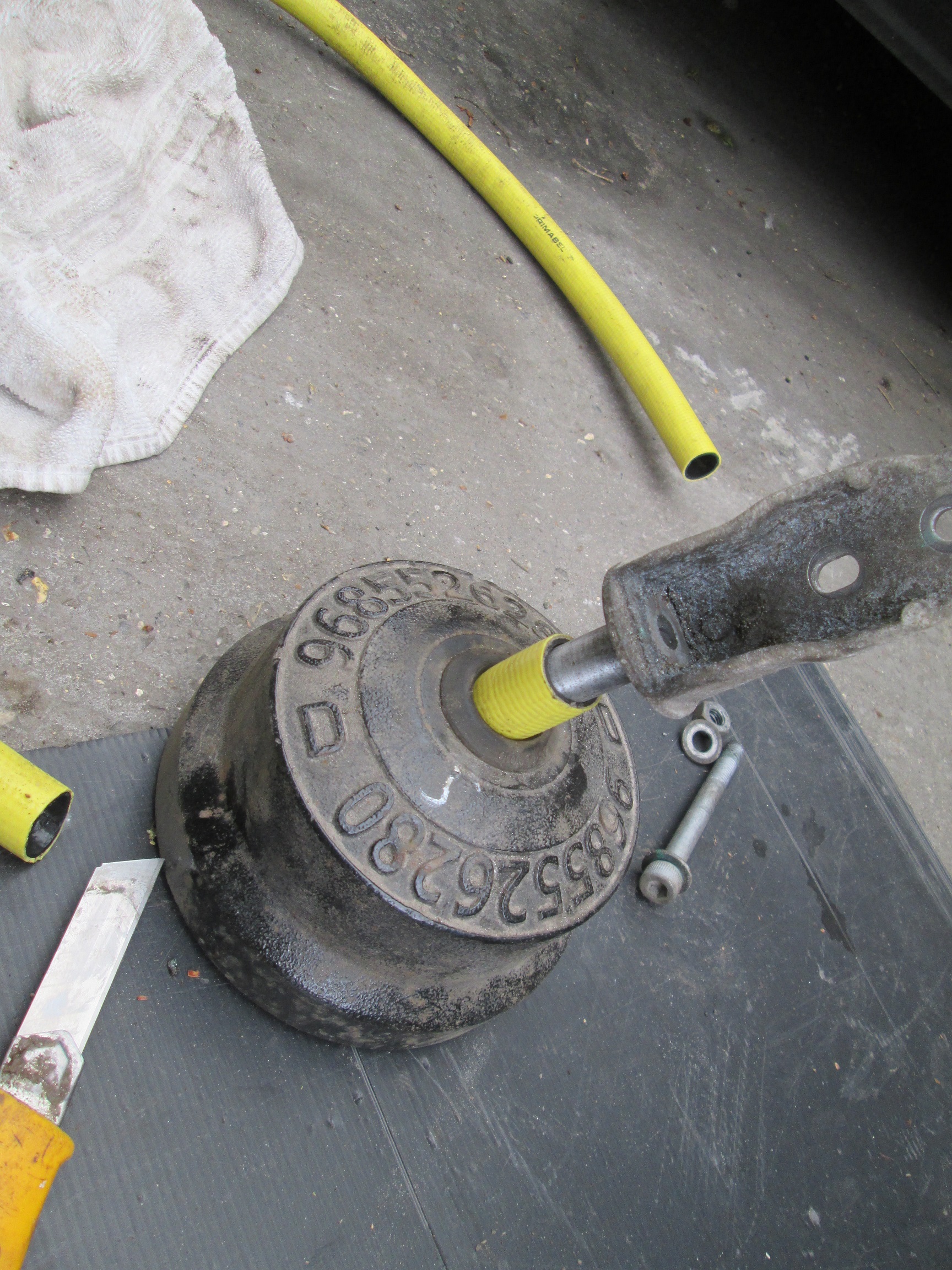 Je les ai donc démonté et ajouté autour de l'axe un morceau de tuyau d'arrosage afin de limiter le battement .
