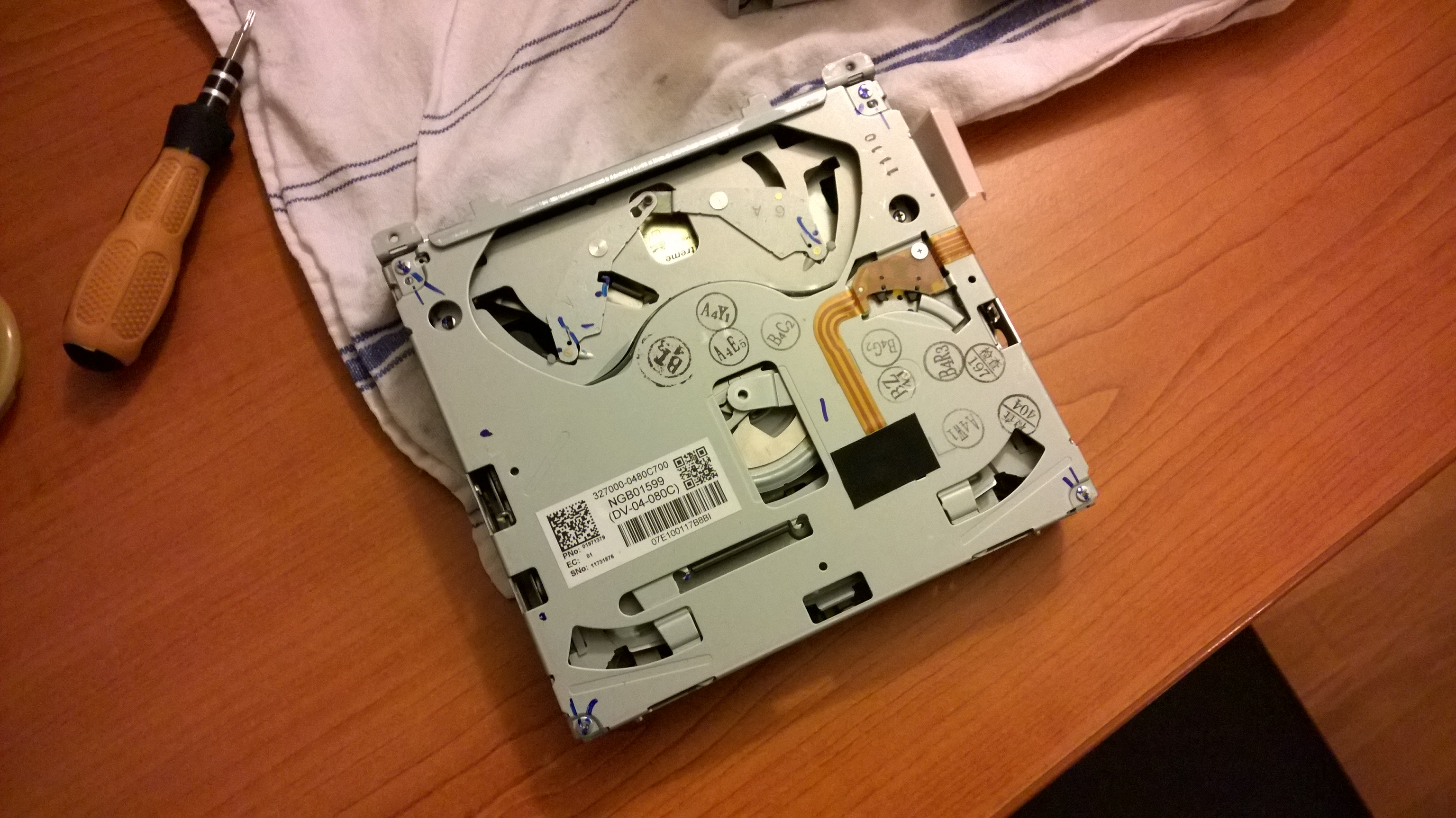 Bon ben bravo pour le démontage, tu peux voir que le lecteur CD est extractible seul, juste avec les vis du haut de la bête. Il possède sa propre nappe pour être branché au reste. Et on n'est pas obligé de démonter la façade pour y accéder.