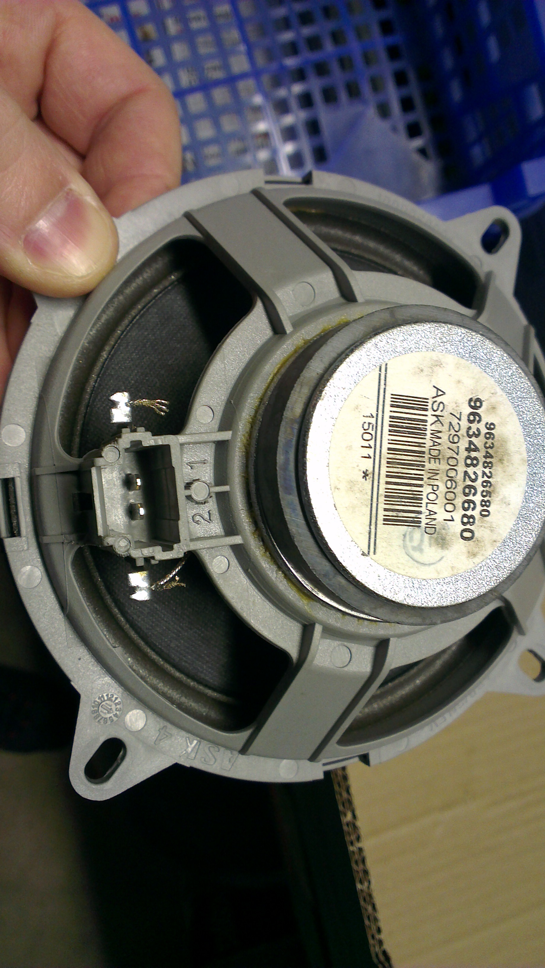 .. Donc comme tu pourras le voir , pas de marque sur les HP d'origine , juste que ça a l'air de venir de Pologne...!! :mdr1: 8| . et que y'a pas d'inscription de polarité , juste 1 et 2.