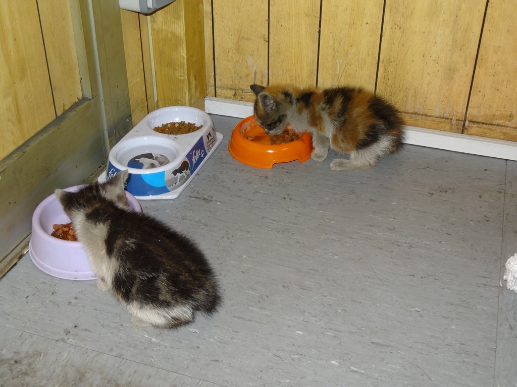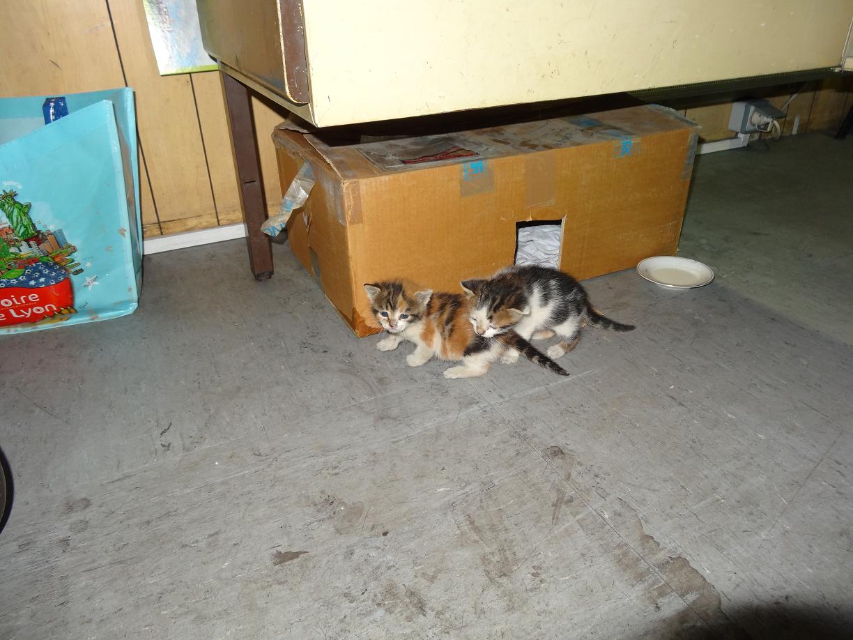 Maintenant, ils sont propres, la caisse est dehors sous l'escalier, le lait est terminé, ils mangent les sachets, les croquettes et boivent. :super:
