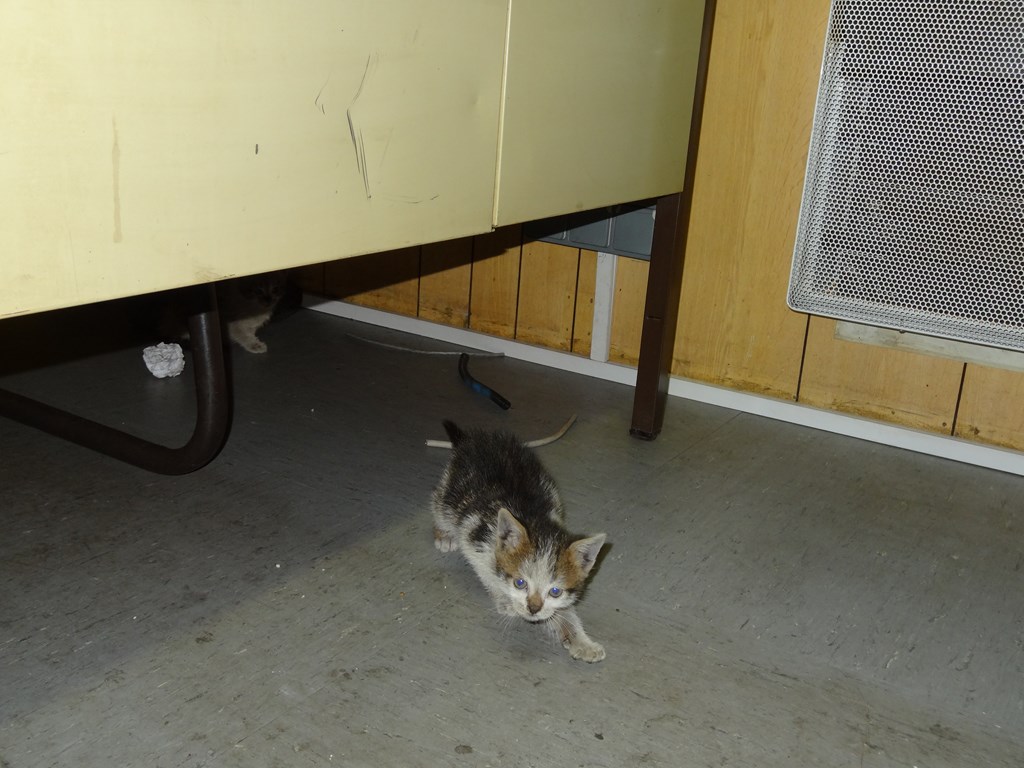 Pourtant, elle est rentré dedans voir les deux petits chats appeurés.