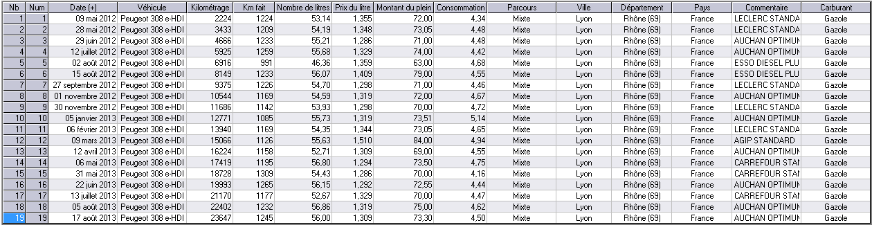 Une consommation raisonnable et toujours régulière, du 4.47l/100 en comparaison du dernier plein 4.44l/100. :D