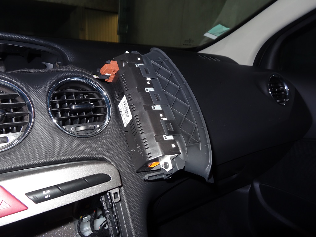 Pour commencer, on débranche la batterie, puis il faut démonter le RD4, le vide poche, le cadre de la commande "clim" et le cendrier.