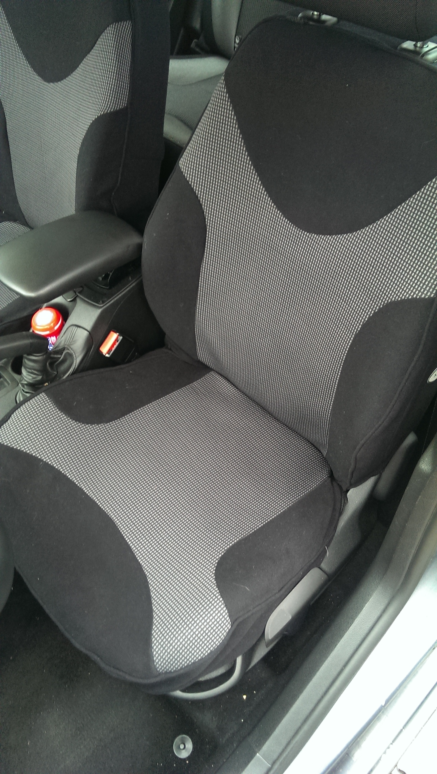 Alors voici des photo des housse posée j'ai installé que les deux avant sans les appui tête juste histoire de pas salir les siège j'installerai le reste plus tard :)