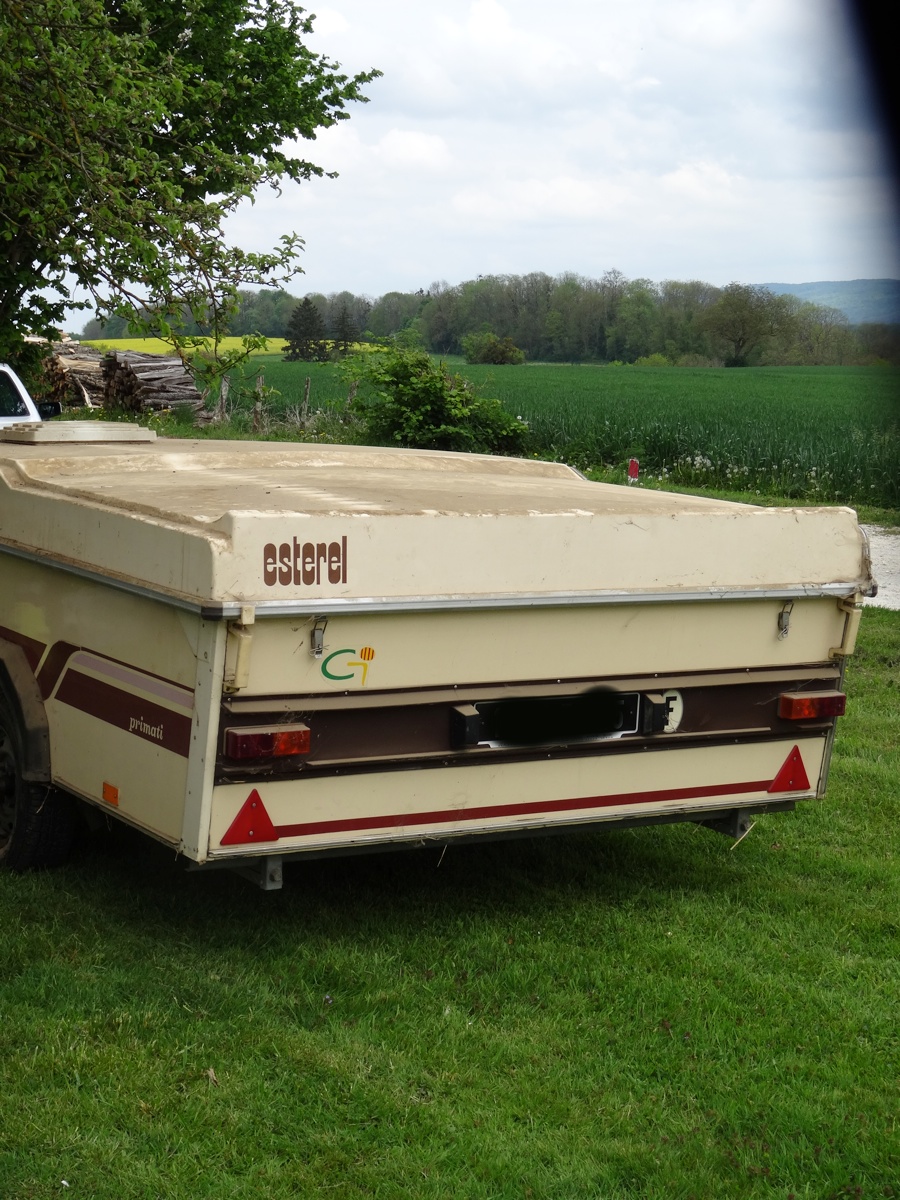 Il s'agit d'une caravane pliante de 1989 qui est remisée depuis bientôt 6 ans :0 8| 8/ Elle appartient à mes parents et il y à peu ils ont décidés de la vendre donc fallait qu'elle soit présentable. Elle à été stockée dans le hangar du paysan avec une bâche dessus, mais les courant d'air ont eu raison de la bâche donc la saletée est bien venu se poser délicatement dessus :hehe: :hehe: