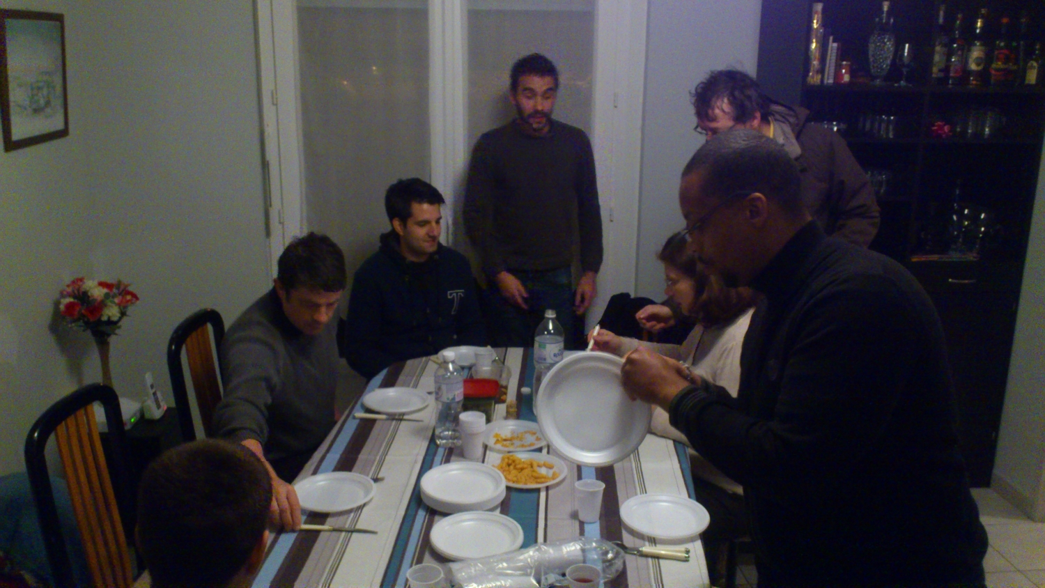 ) les autres parlent voitures entre autre. tout ce petit monde se réunit petit à petit et finalement après avoir hésité un moment, on allume le barbeuc... peu de temps après la pluie est parmi nous mais ça ne va pas nous arrêter, on a commencé, on finit