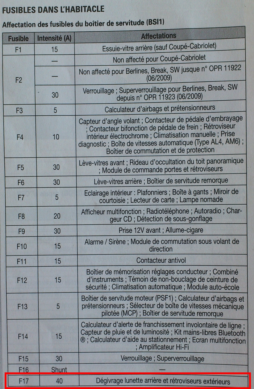 coté câblage, petit coup d'oeil sur la RTA :super: très pratique :mrgreen: et on trouve que sur le BSI c'est le fusible F17 qui gère le circuit dégivrage et les broches 1 &9 du connecteur PH1 qui sont affectées à la commande du dégivrage :