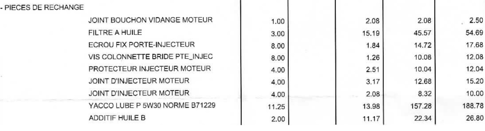 A la lecture de li liste des pieces de rechange de ton devis , je dois avouer que ma liste est assez différentes.