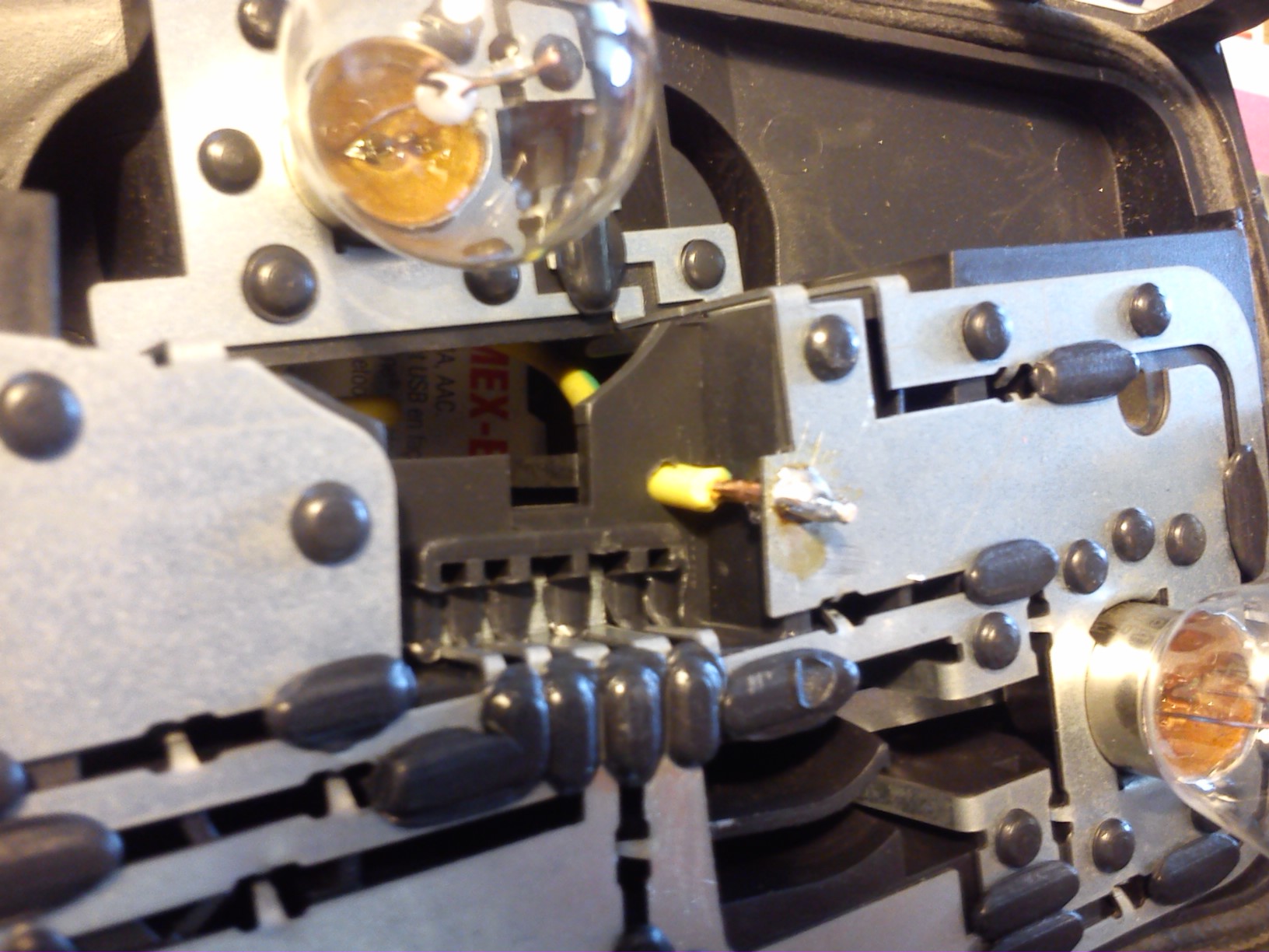 Ce qu'il faut principalement garder à l'esprit c'est dans tous les cas de pouvoir enlever l'optique rapidement, et que si un changement d'optique est réalisé, on puisse facilement tout refaire fonctionner facilement. Avec l'épissure, l'avantage est que le jour où l'optique est remplacé par une platine avec connecteur large (on peut rêver), en branchant juste le connecteur, ça remarche. alors qu'avec aucun fil de masse sur le connecteur, il faut ressouder sur la platine...