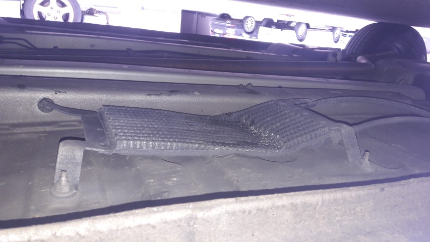 En faisant le tour de ma 308, j'ai remarqué qu'une pièce était bien abîmée (sûrement un trottoir ou quelque chose du genre). Je ne sais pas depuis combien de temps elle est comme ça, je l'ai depuis un mois.