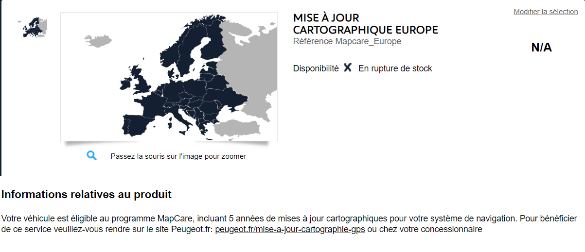 C'est comme si on ne pouvait pas (plus) faire de MàJ gratuite ! et si on fait défiler les produits payants disponibles, on arrive à toute l'Europe à 149 € !