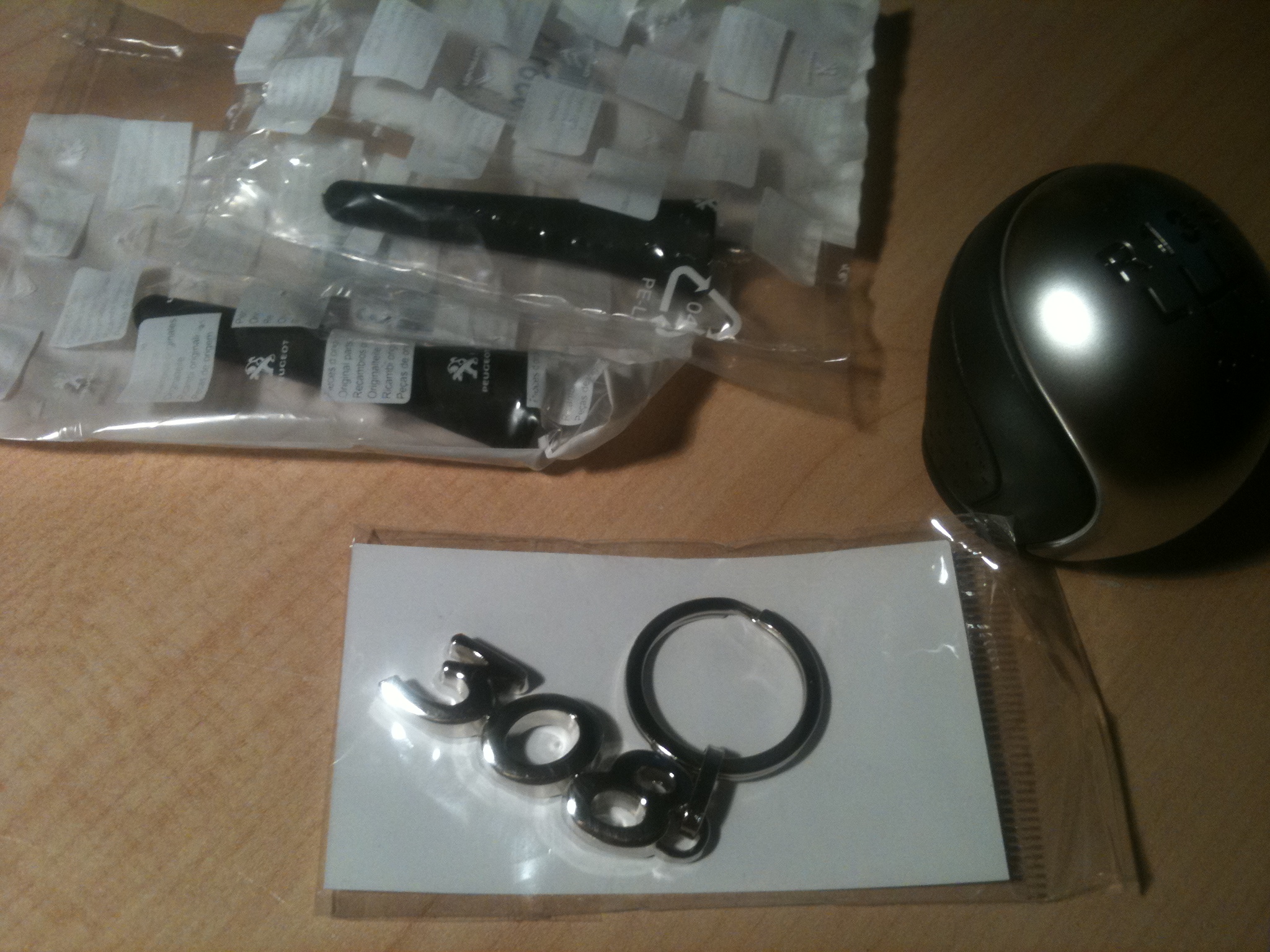 et deuxième commande sur le site d'accessoires PEUGEOT: un pommeau (je préférais celui-ci au tout alu), un petit porte clés 308, et une antenne courte ( 2 recues !? ) de 607.