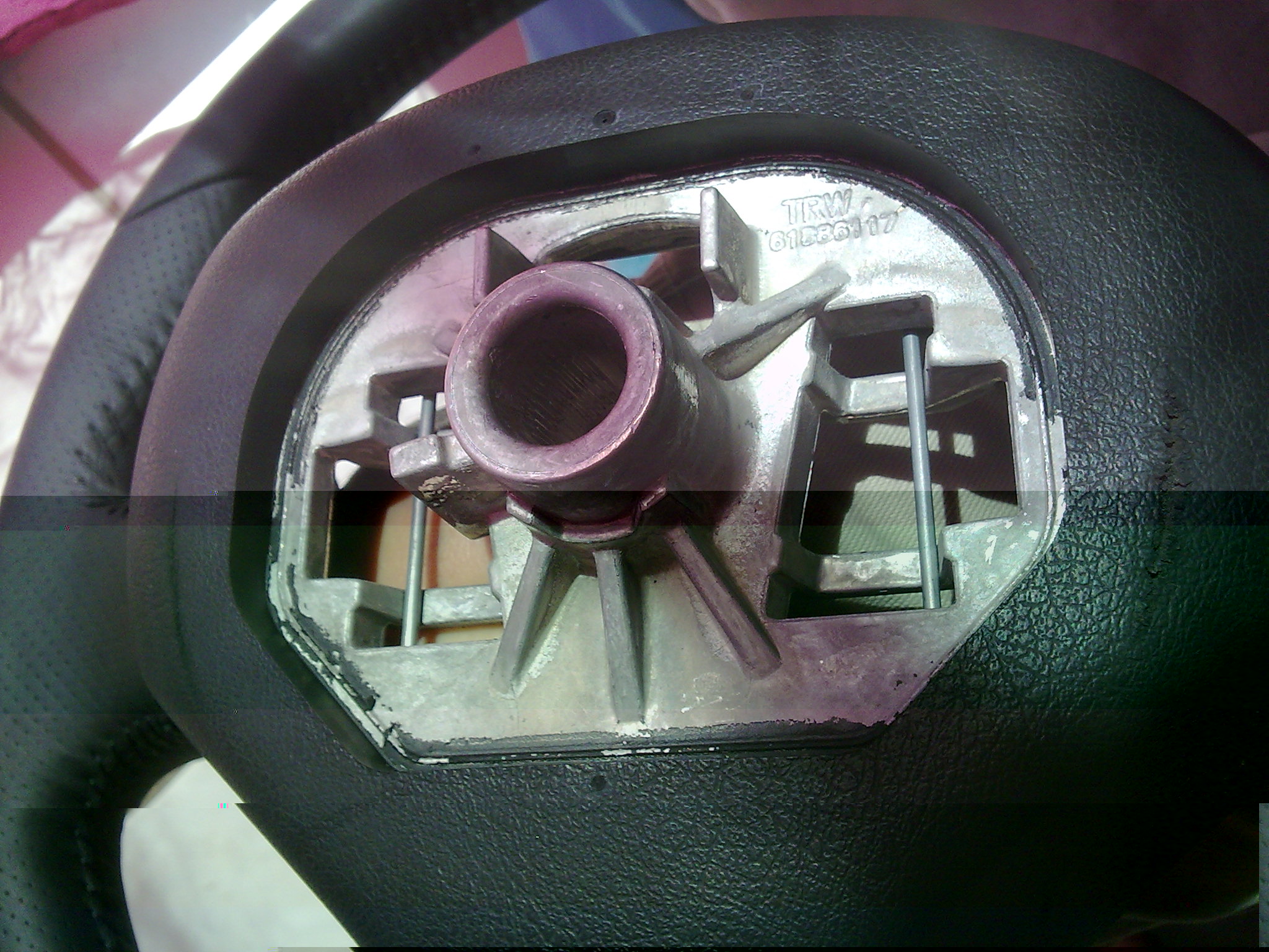 Bonjour à tous, je vends donc un volant de 308 cc, tout cuir, avec le méplat dans sa partie basse et sa déco en alu sur la branche du bas, il est comme neuf, mais à deux petits défaults à l'arrière de celui-ci qui ne seront pas visible une fois le volant posé (2 coupures légères), il est complet, avec son airbag neuf ;)