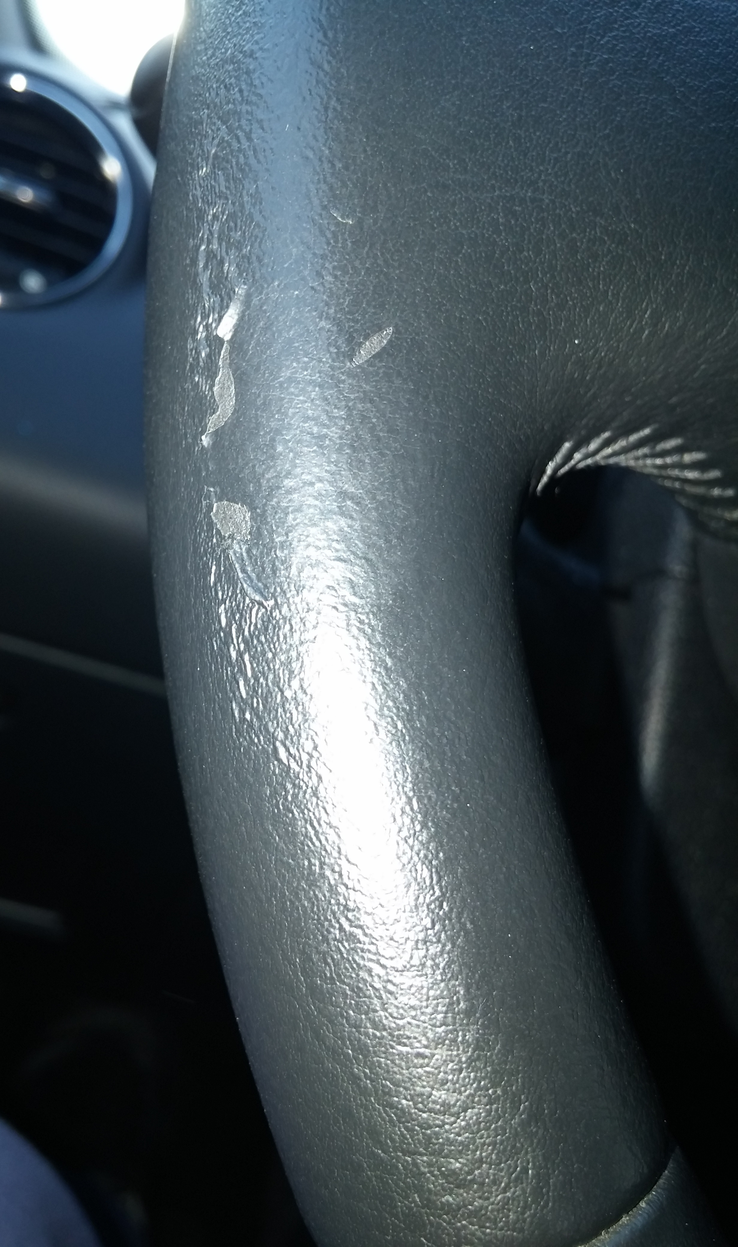 J'ai mon volant sur la partie gauche elle s'ecaille (voir photo) y'a t'il un produit pour retrouver sa forme ou ces mort :/