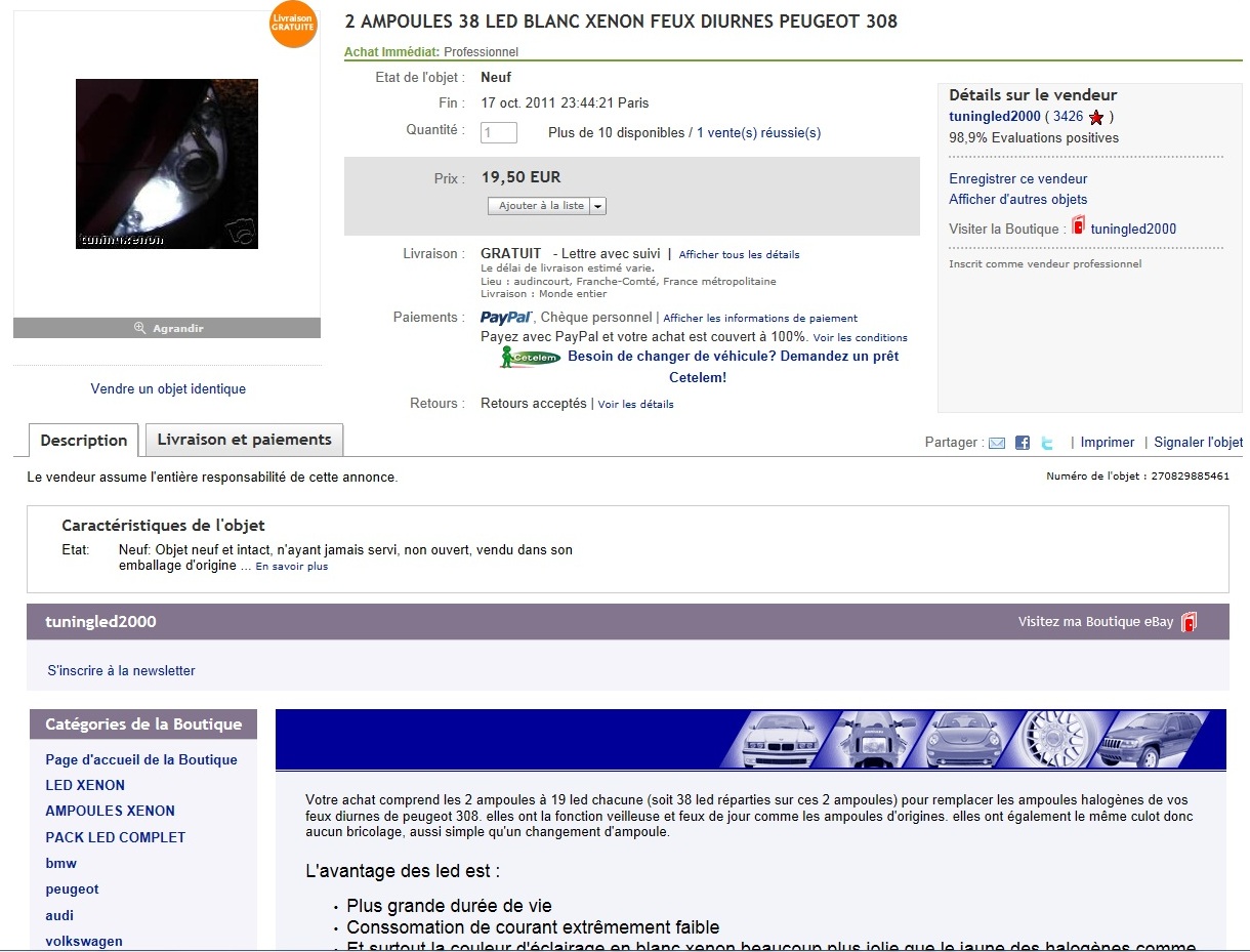A savoir qu'il y a souvent des promos et qu'il a plusieurs noms sur E**Y (tuningled - tuningxenon -hitech2000) :?: et un site internet adtuning.fr.
