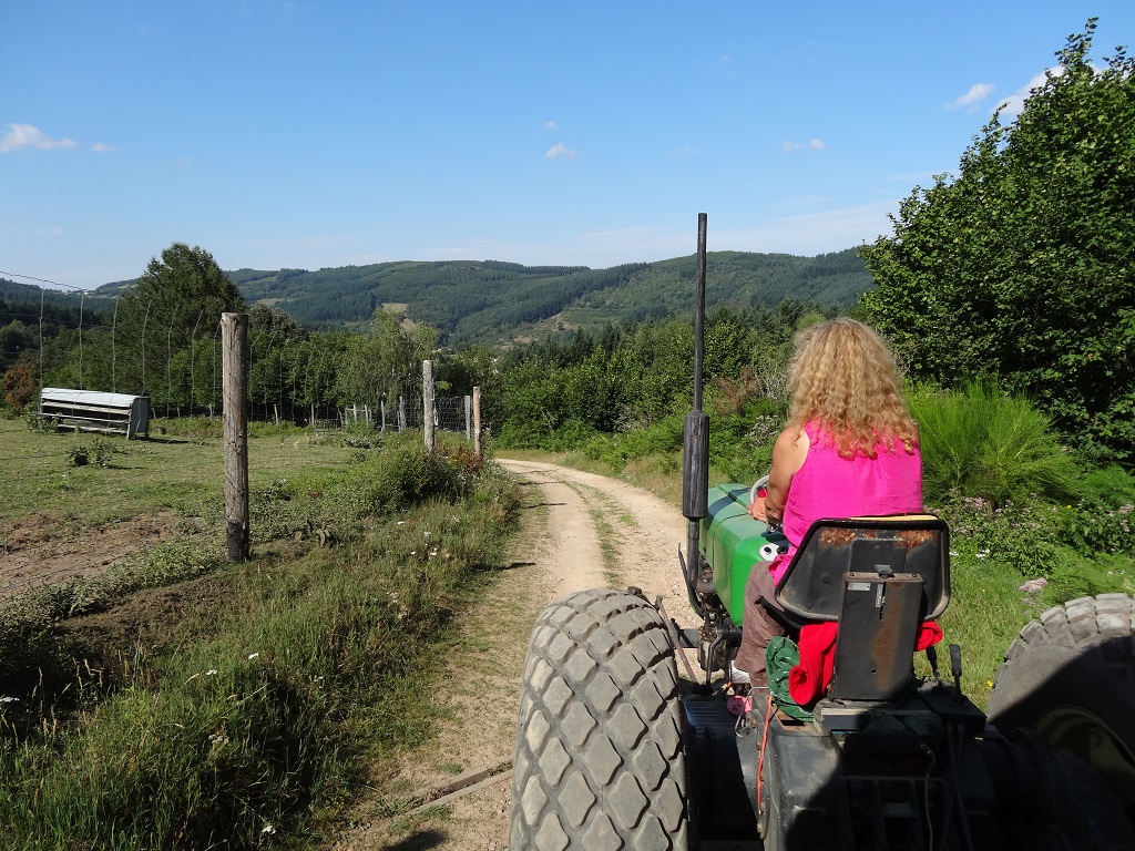 Documentation à lire sur place, puis promenade commentée par la patronne du coin en carriole derrière le tracteur, super.