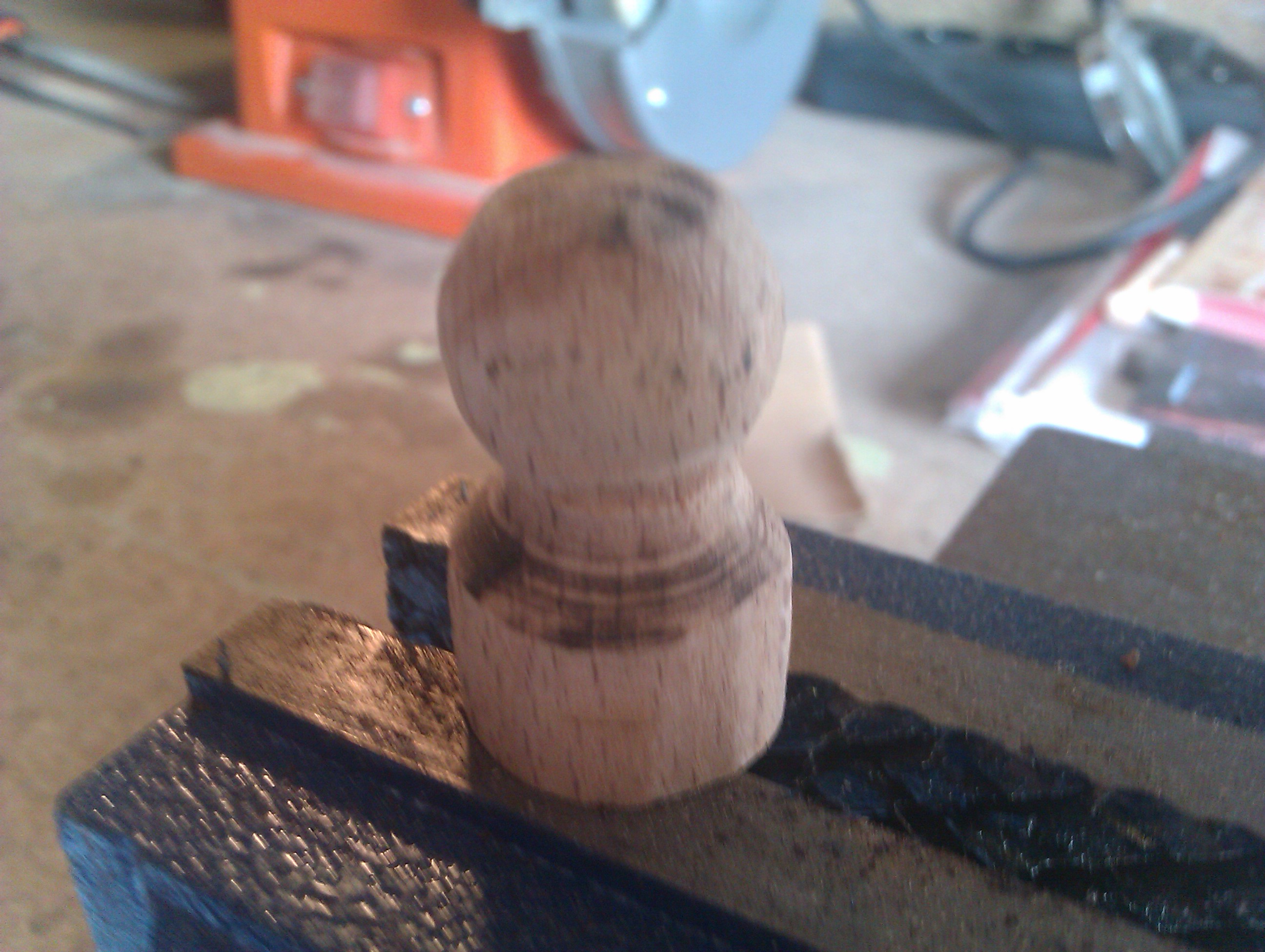 Et en la chauffant, on réduit le diamètre à un peu moins de 11mm (ici fait à l'étau, car creux, sinon, on peut tailler, c'est plus propre ;))