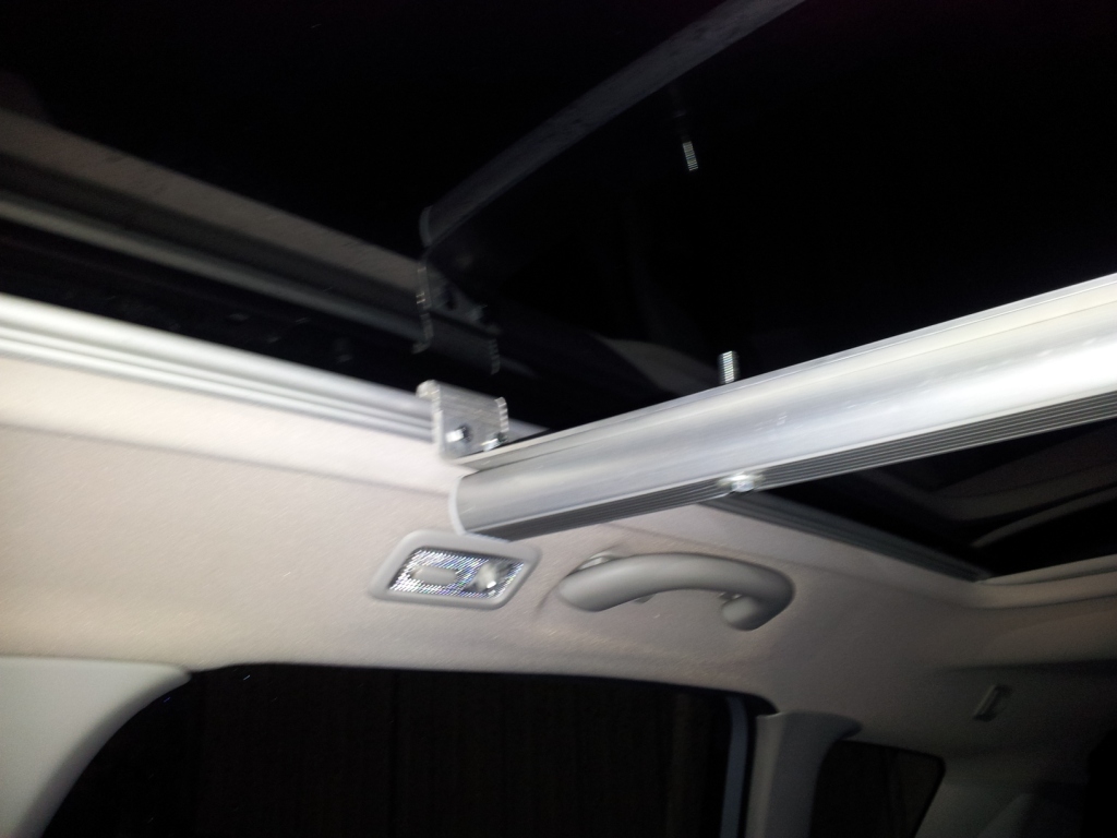 En regardant un peu la configuration du toit panoramique, je me suis aperçu qu’un rail métallique de chaque côté ferait mon bonheur.