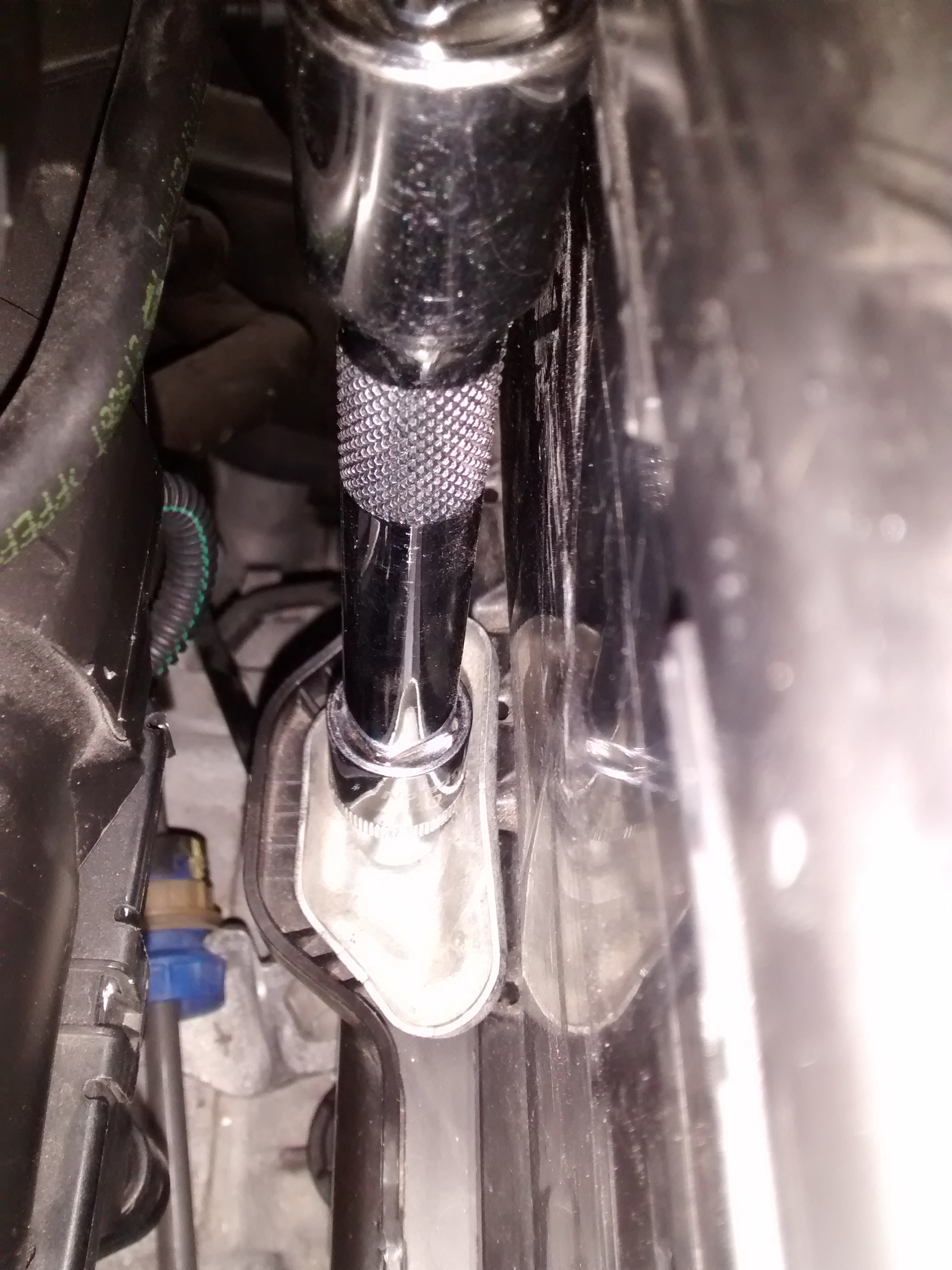 J'ai rempli les 2,1 litres d'huile avec l'entonnoir+ flexible. Pour le remontage, il faut l'outil de diagnostic, notamment pour supprimer le défaut BSI coupure tension inattendue.