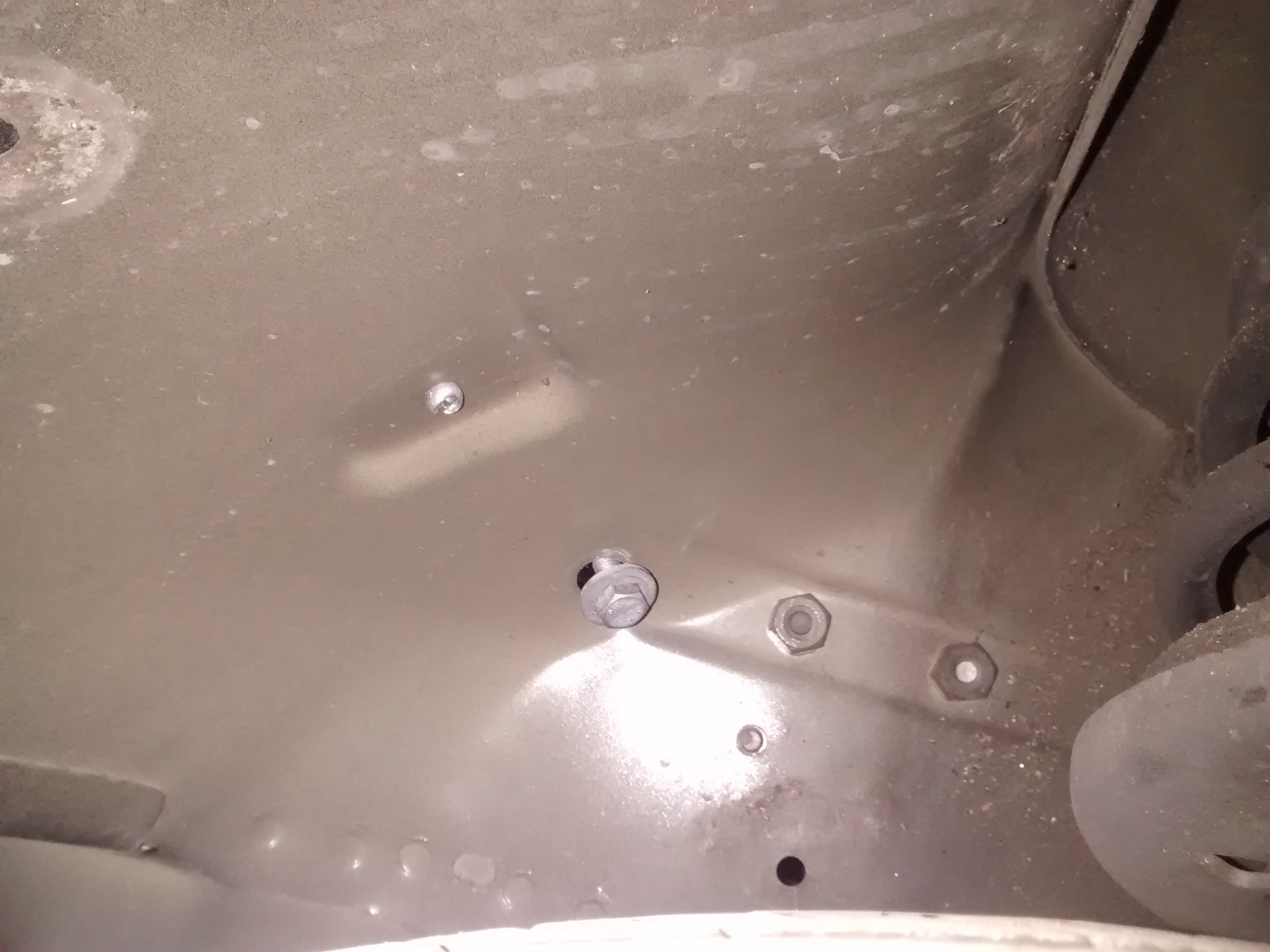 Démontage de la protection sous le moteur : 7 vis, 4 écrous.