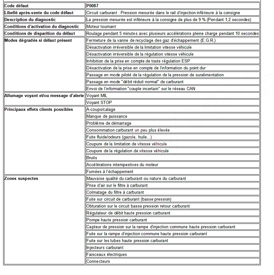 Encore ce défaut P0087 qui me pourrie la vie