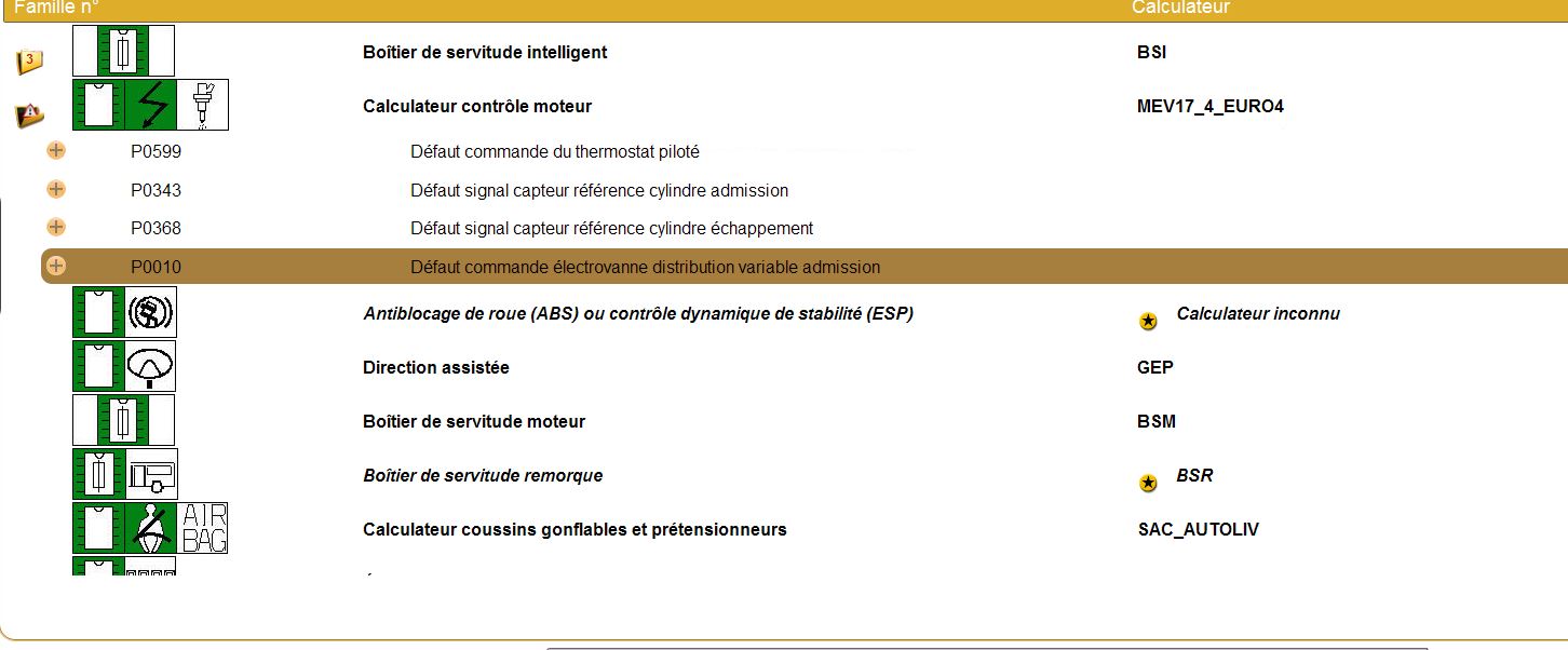 - P0599 Défaut de commande du thermostat piloté (je crois que c'est du à mon chauffage qui ne fonctionne plus :D )