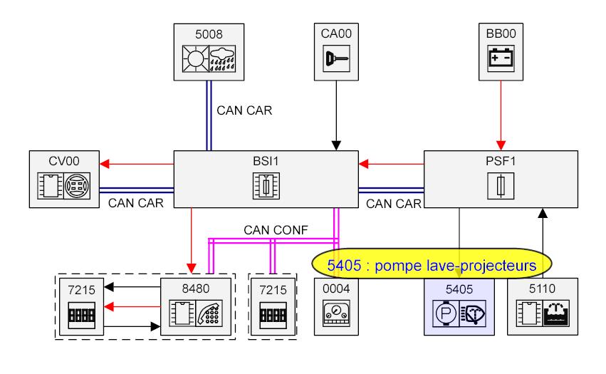 2 sorties pompe une pour le pare brise av l'autre ar sans xénon si avec 3 robinets électrique il est vrai que c'est schématisé