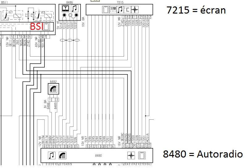 Pour le brochage, je peux te donner la correspondance entre les fils du poste et ceux de l'afficheur si tu veux. Dans le premier schéma que j'ai, il n'y a que le détail des clips (prises) par connecteur, pas la correspondance de ce que ca fait (à part +/- et les 2 fils BSI).