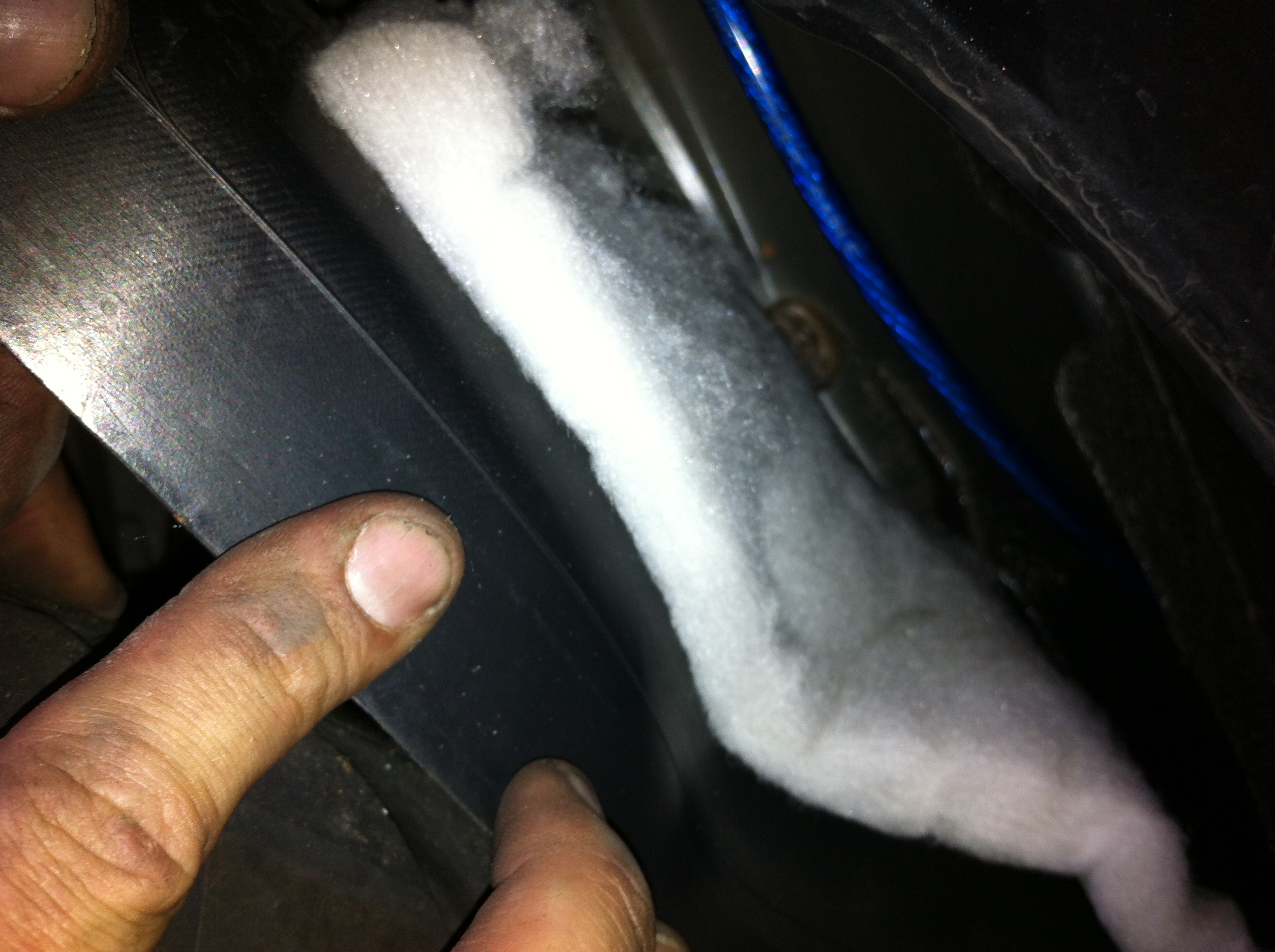 après il faudra demonter le pare boue faire remonter le cable pour ressortir juste derrière derrière le plastique en bas du parebrise