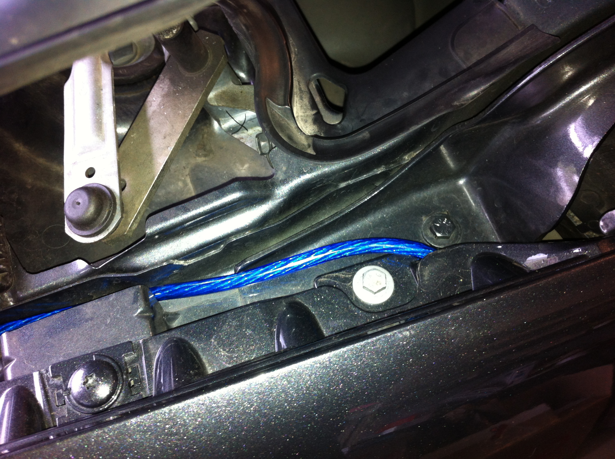 une fois dans l'habitacle démonter les caches des bas de portières puis cacher les cables sous la moquette jusqu'àu siège arrière