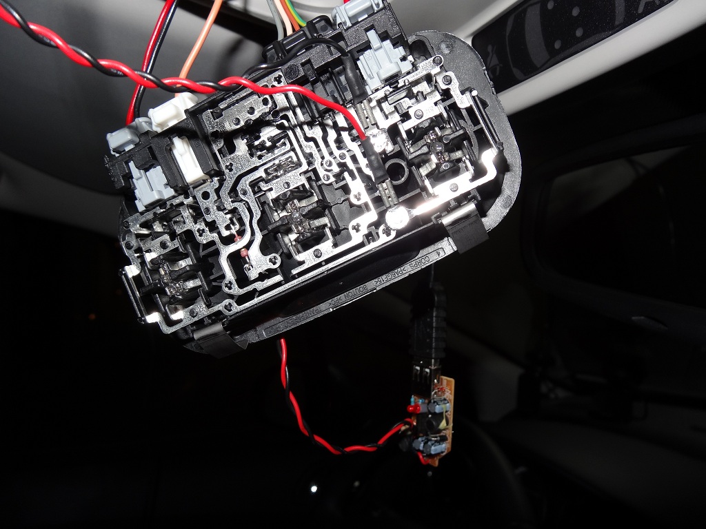 Le montage provisoire 5vdc à installer sous le cache gris du rétroviseur pour la caméra
