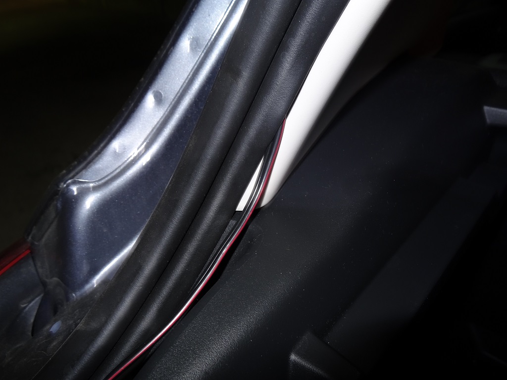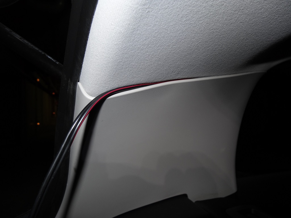 J'ai passé ce dernier au maximum dans le joint supérieur des portières côté conducteur, le câble est totalement