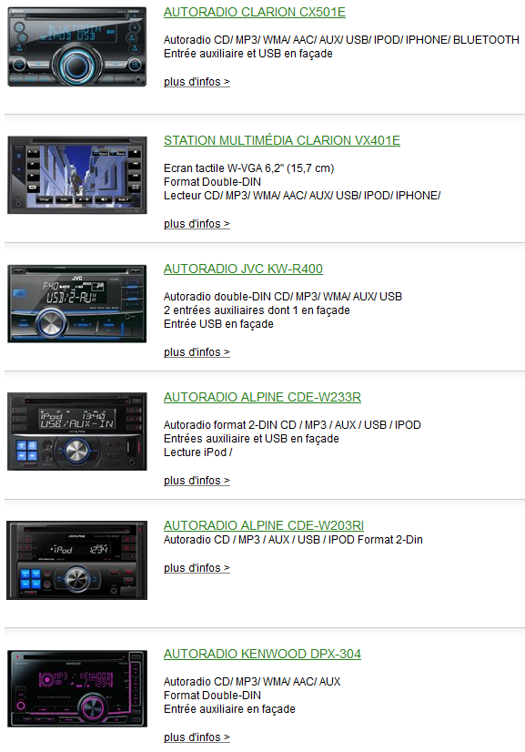 Pioneer et Alpine sont les leaders pour fournir des interfaces plug-n-play (tu branches et ça marche de suite)