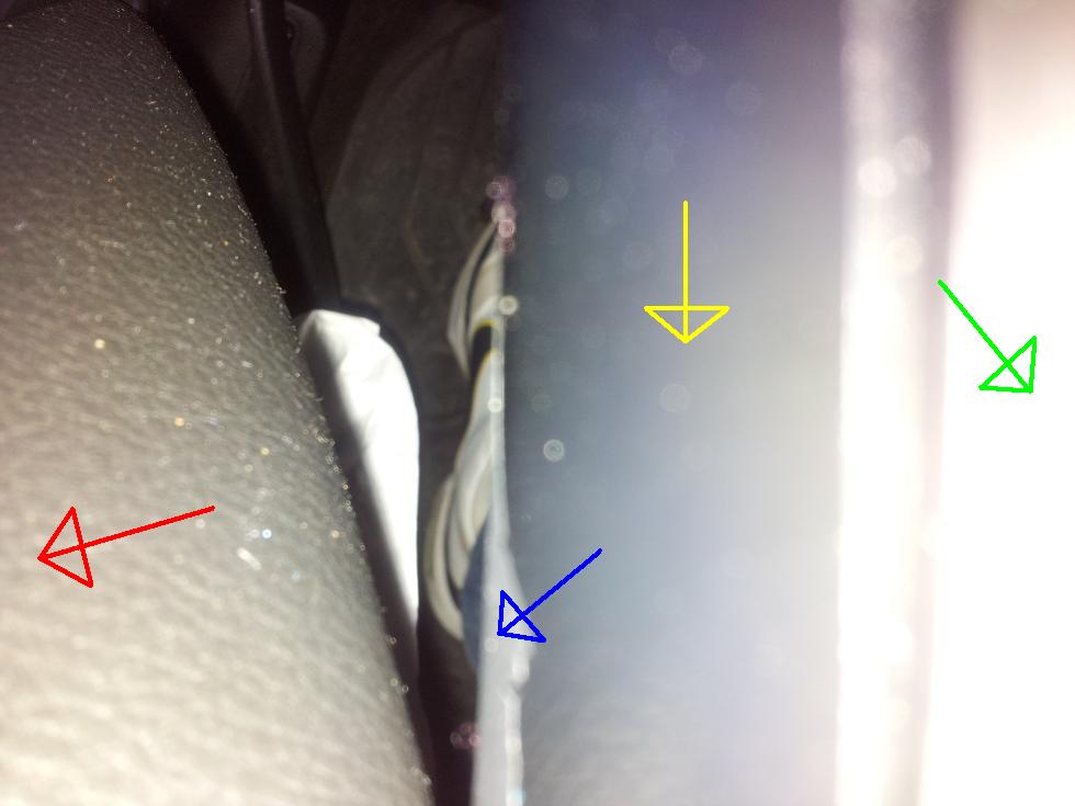 La flèche jaune est la partie intérieure de la poignée sans le "soft touch"écaillé ( la base en plastique noir brilliant)