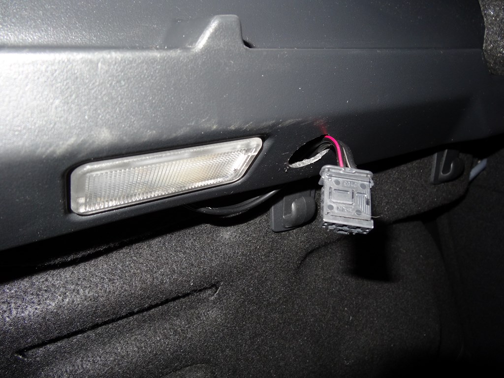 La prise sera clipsée sur le support de l'éclairage du coffre :super: , il reste à passer le câble plat sous le cache.