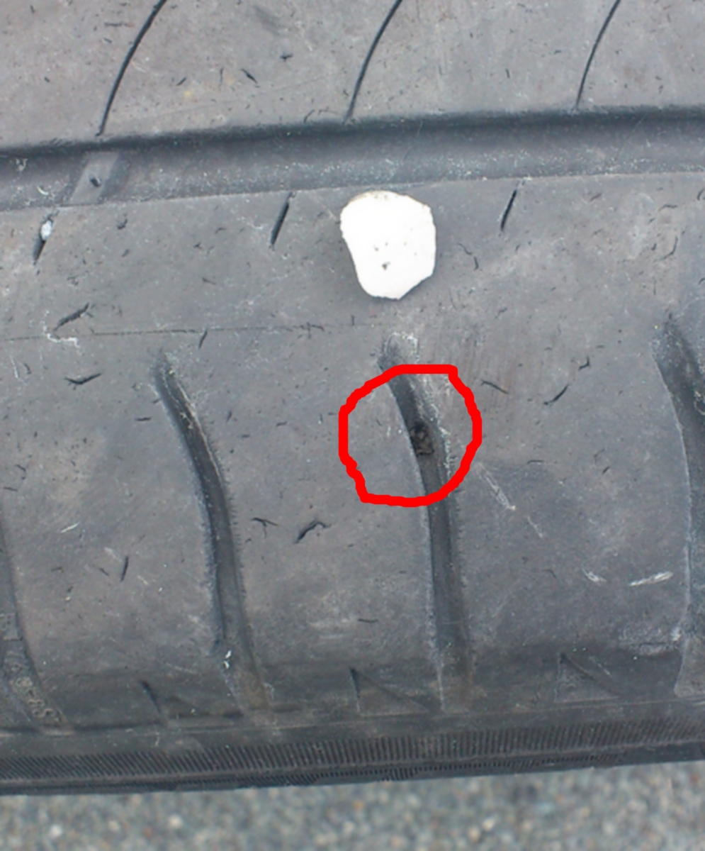 Le pneu arrière droit semble tenir, je croise les doigts pour que le pneu ne se dégonfle plus...