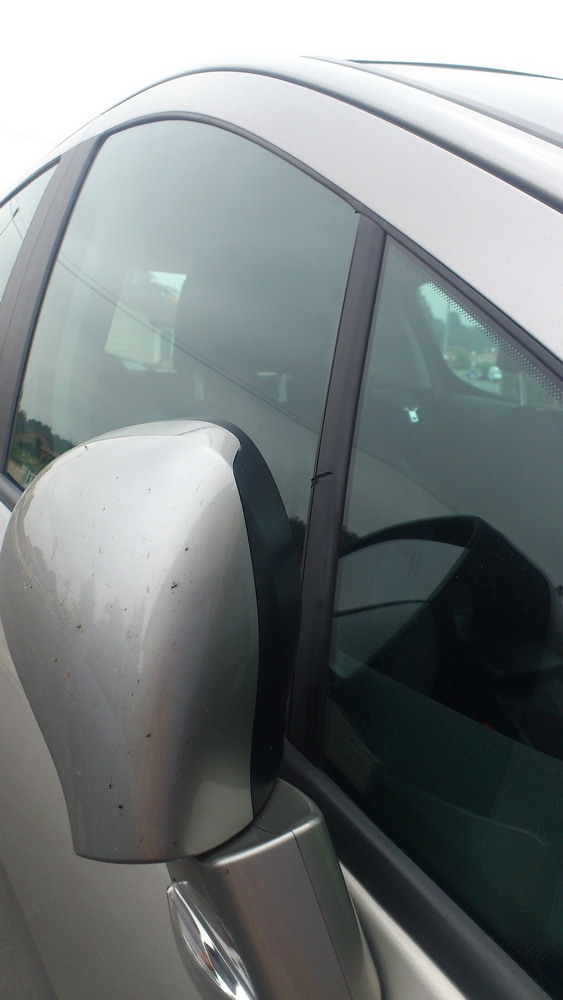 c'est juste sur le montant de la vitre, je n'ai pas vu d'autre trace ailleurs. en plus la griffure est placé à 10 cm par rapport au bas de la vitre. autrement dit c'est en théorie protégé par le rétro