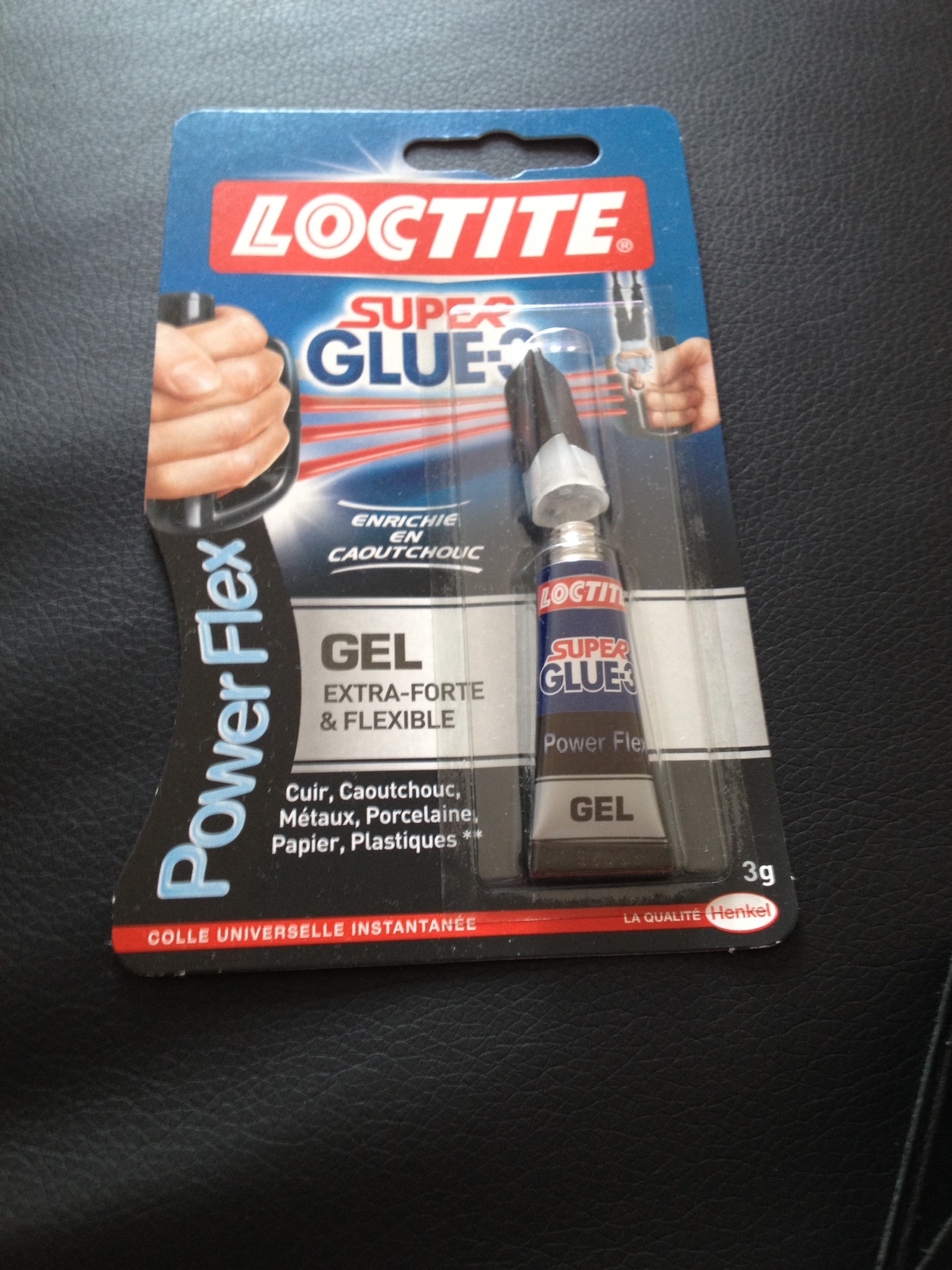 J'ai pris de la super glue 3, en gel, de marque LOCTITE.