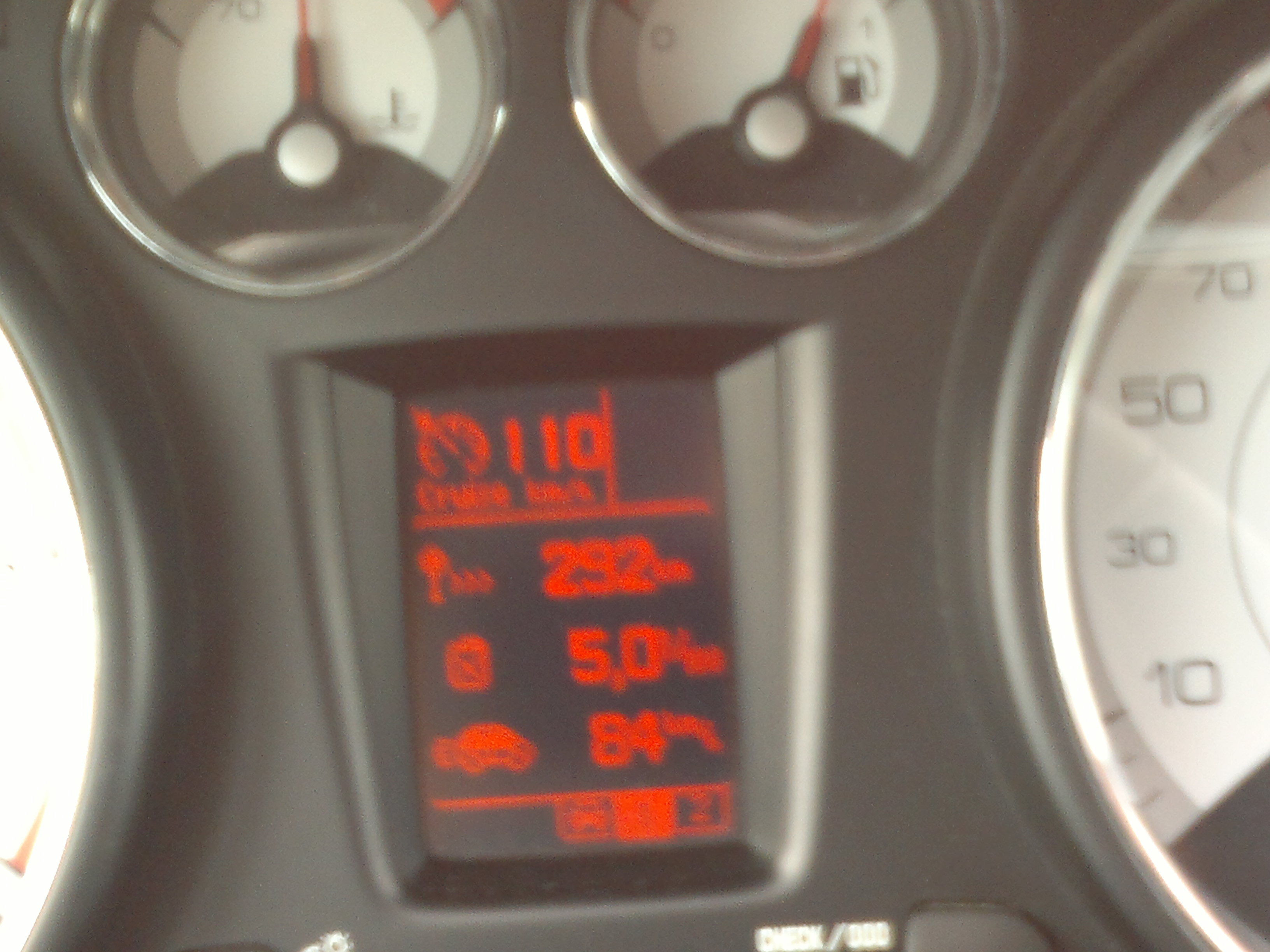 Ce serait marrant de remplir un bidon de 5 litres calibré de gazole et d'essence pour voir l'affichage des compteurs, 8|