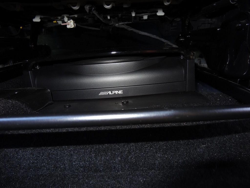 Le caisson du subwoofer est posé sous le siège conducteur, verrouillé par les deux vis. :D