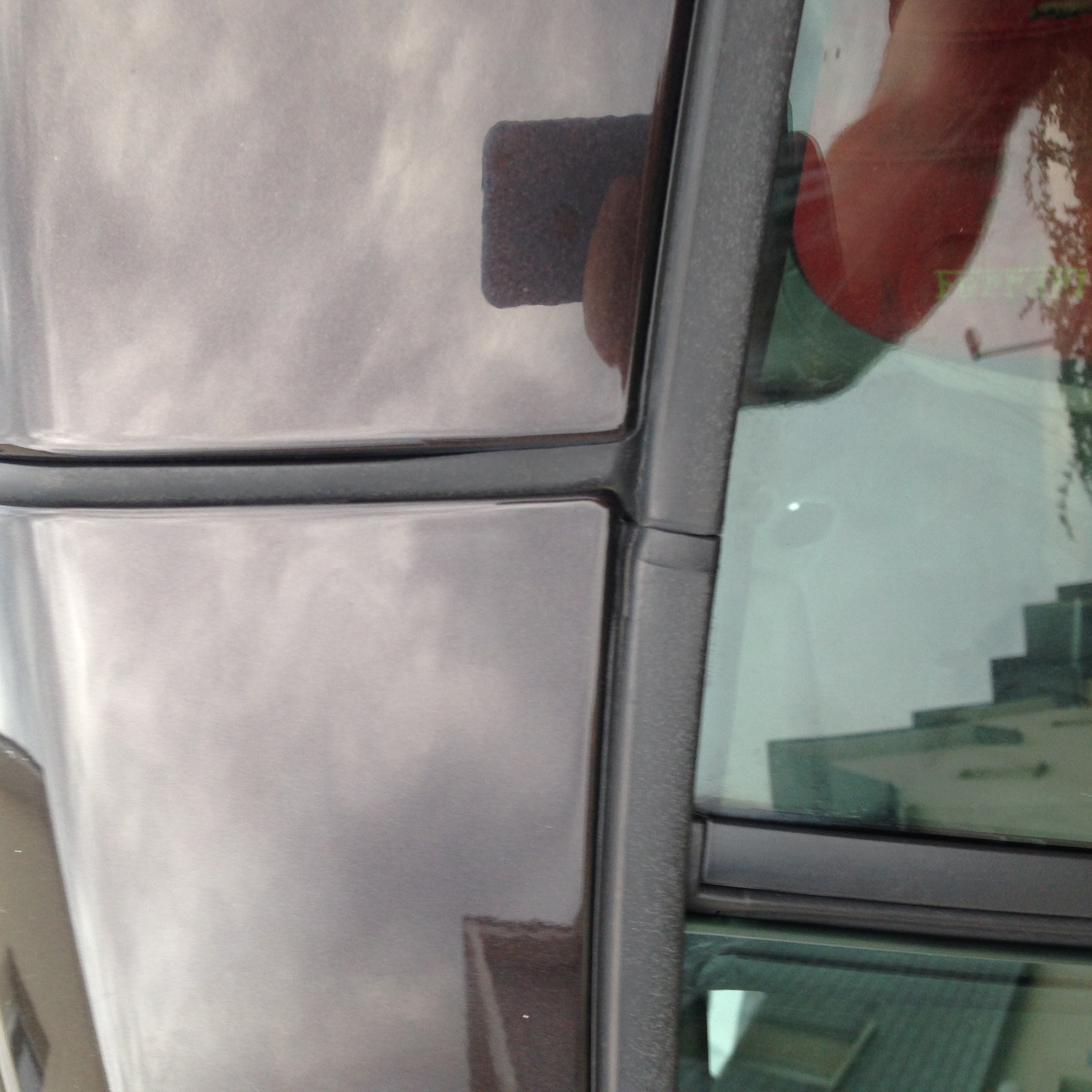 au niveau de l 'intérieur derrière le coter passager et conducteur il y a les fenêtres, et en haut il y a un joins du toit qui fuit quand il pleut beaucoup,